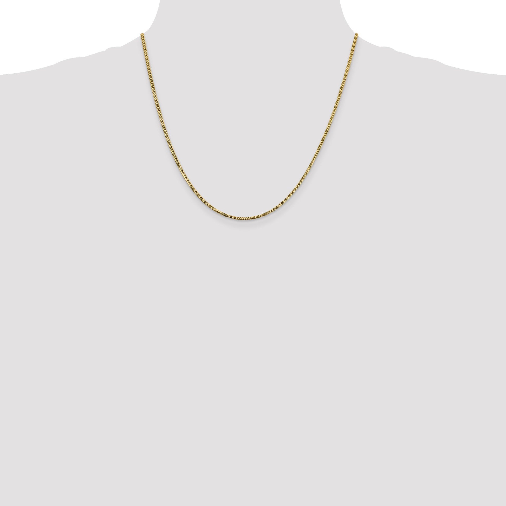 The 14K Yellow Gold 14K 20 Inch 1.4mm Franco With Lobster Clasp Chain is a sleek piece of jewelry perfect for everyday wear. This chain features a polished finish and a solid cast design for durability and shine. Its 20-inch length makes it ideal for layering or wearing solo. The delicate 1.4mm width adds a subtle touch to any outfit, and the sturdy lobster clasp ensures a secure fit. Made from high-quality 14K gold, the 14K Yellow Gold 14K 20 Inch 1.4mm Franco With Lobster Clasp Chain combines style and reliability, making it a must-have addition to your jewelry collection.