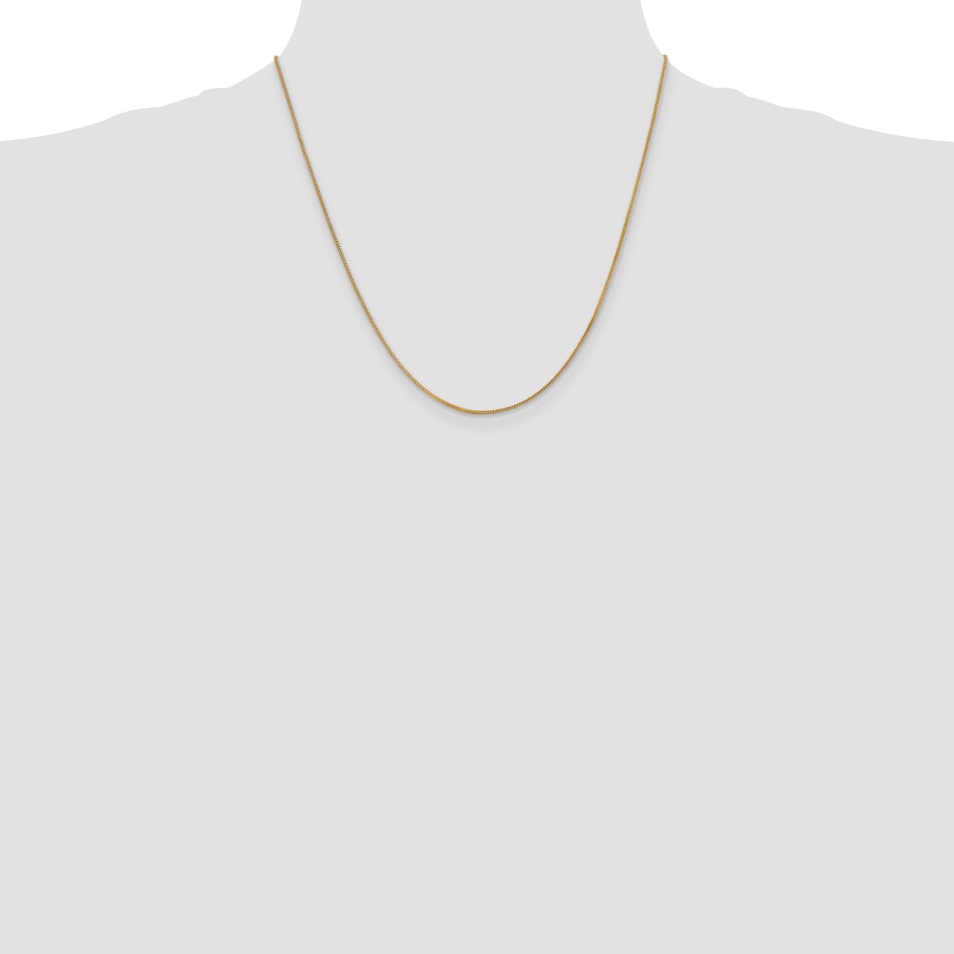 The 14K Yellow Gold 14K 20 Inch .9mm Franco With Lobster Clasp Chain offers a sleek and timeless look for women. Made from solid 14K gold, it shines with a polished finish that adds elegance to any outfit. The chain measures 20 inches long and features a slim 0.9mm width, making it perfect for layering or wearing alone. Its sturdy lobster clasp ensures secure wear, while the extruded manufacturing process guarantees quality. The 14K Yellow Gold 14K 20 Inch .9mm Franco Chain combines style with dependability, making it a must-have in your jewelry collection.