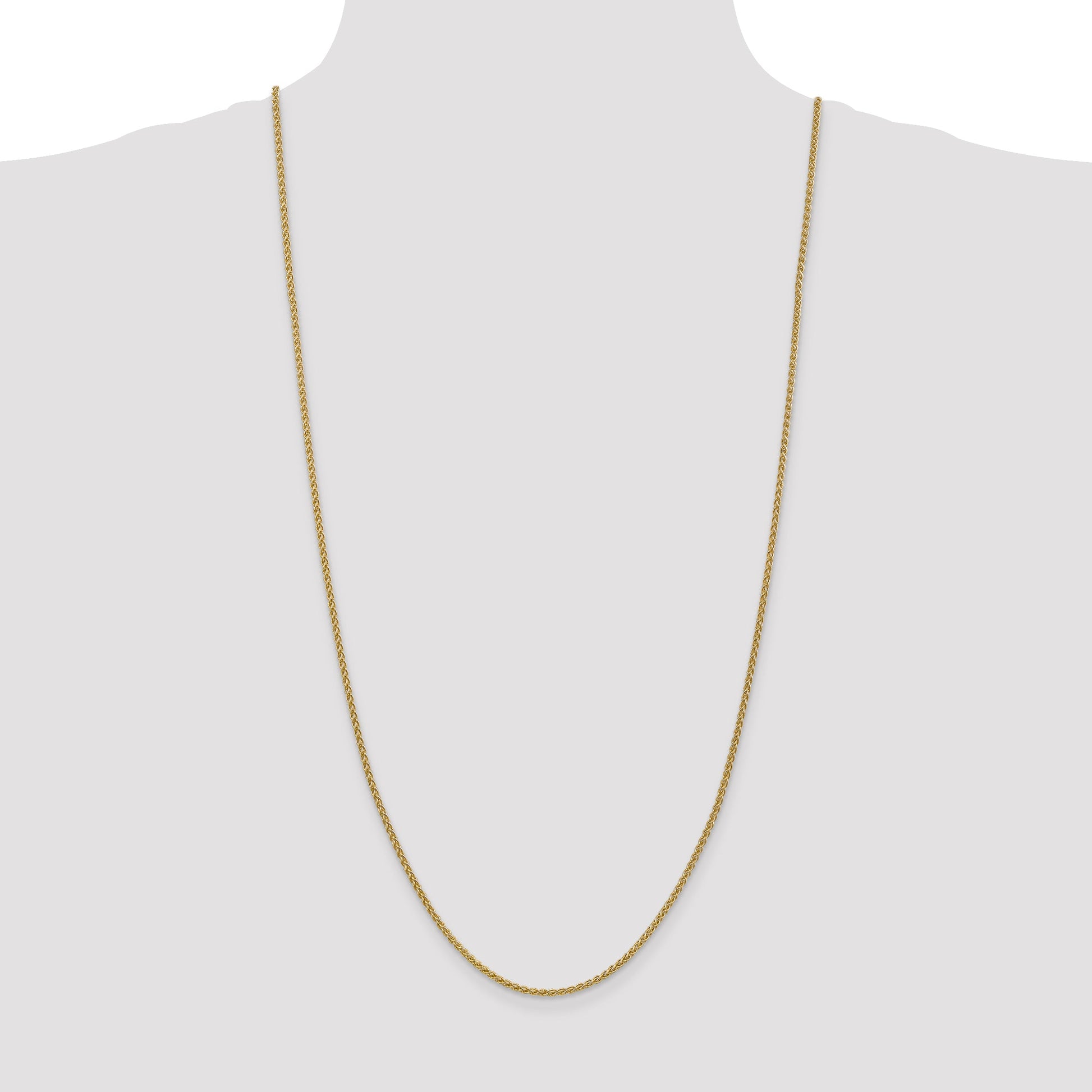Discover the 14K Yellow Gold 14K 2.1mm Spiga Chain, a sleek and sturdy piece perfect for everyday wear. Made from pure 14K gold, this solid necklace features the classic wheat pattern that adds a stylish touch to any outfit. The 30-inch chain is polished to a bright shine and has a secure lobster clasp for comfort. With a width of 2.1mm, it strikes the right balance between durability and elegance. Built with quality in mind, the 14K Yellow Gold 14K 2.1mm Spiga Chain comes with a lifetime guarantee, making it a reliable addition to your jewelry collection.