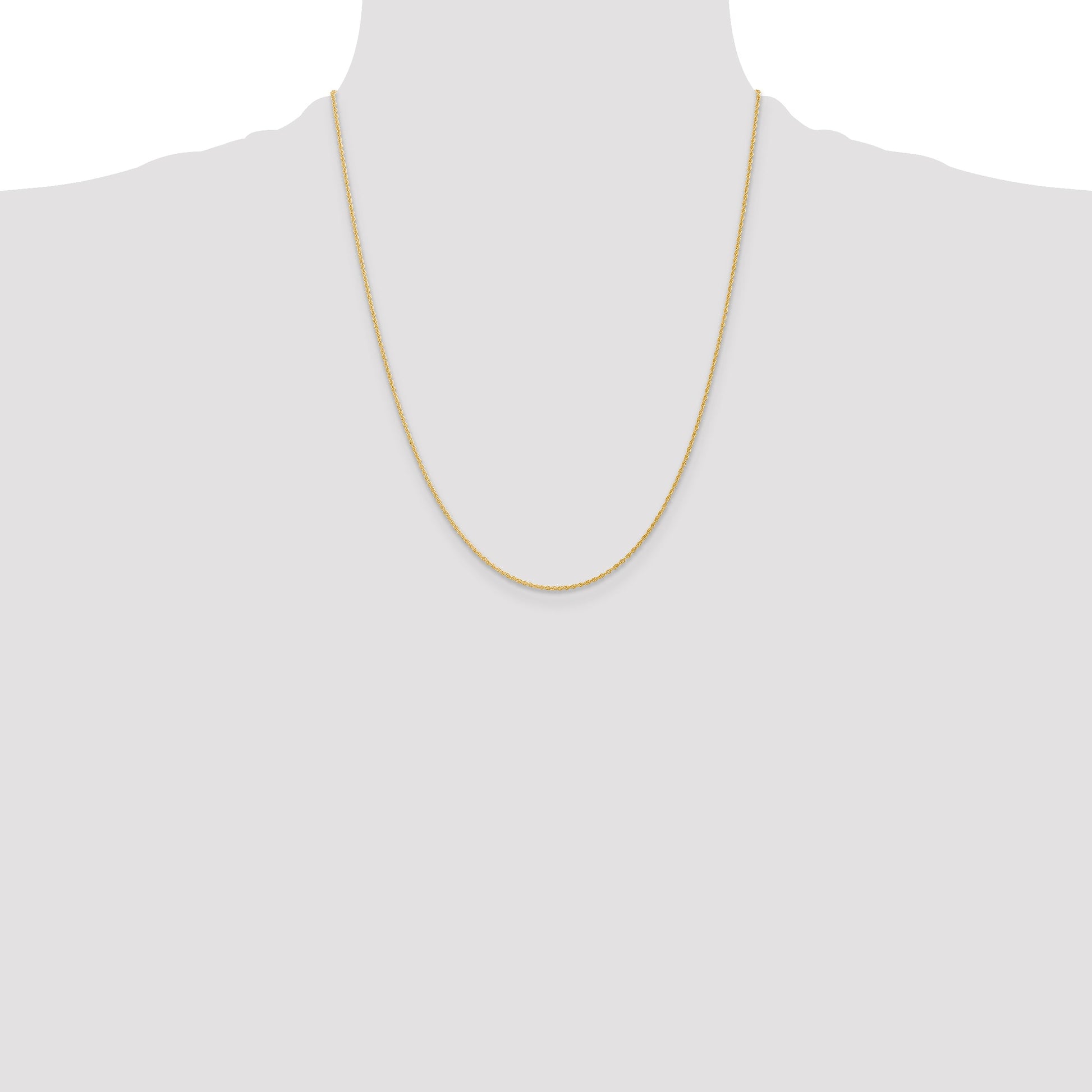 The 14K Yellow Gold 22 Inch 1.1mm Baby Rope Chain stands out as a stunning piece of fine jewelry. Its 14K gold assures lasting shine and durability, while the polished finish enhances its elegance. At 22 inches long, this rope-style chain offers a perfect length for a variety of pendants or a solo statement piece. The width of 1.1mm provides delicate charm without compromising strength. Secured with a trusty spring ring clasp, this beautifully crafted chain blends sophistication with everyday wearability. Elevate your style effortlessly with the 14K Yellow Gold 22 Inch 1.1mm Baby Rope Chain.