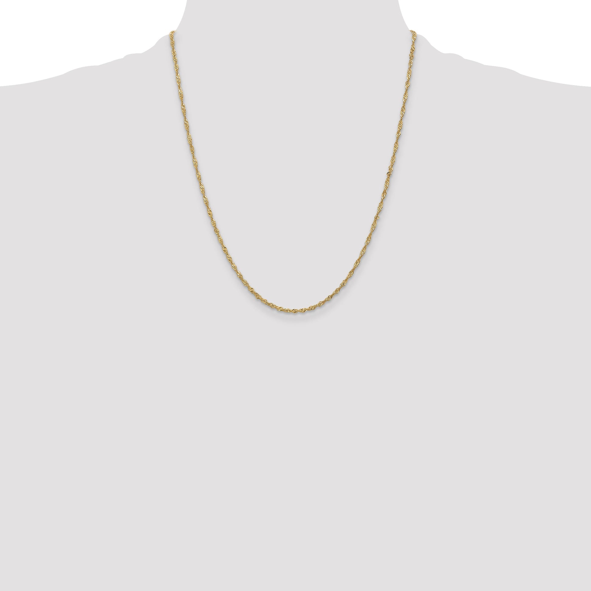 The 14K Yellow Gold 22-Inch 1.70mm Singapore Chain is a true testament to timeless elegance. Crafted from solid 14-karat gold, this exquisite piece showcases a polished finish that radiates warmth. Its 22-inch length provides versatility, making it perfect for layering or wearing alone. The delicate 1.70mm width adds a touch of grace without being overwhelming. A secure lobster clasp completes the chain—a testament to remarkable craftsmanship. This Women's necklace uses an extruded and die-struck process, ensuring durability and high quality. Experience pure beauty with the 14K Yellow Gold 22-Inch 1.70mm Singapore Chain.