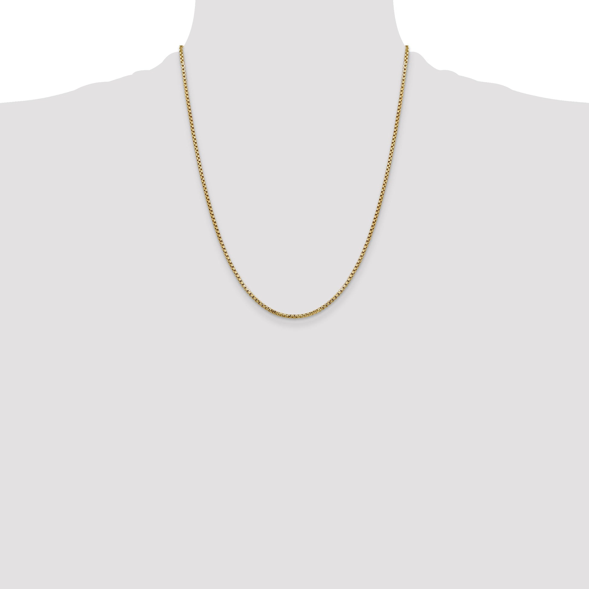 Introducing our elegant 14K Yellow Gold 22 Inch 1.75mm Semi-Solid Round Box Chain Necklace with Lobster Clasp. This polished beauty shines in 14K gold, showcasing a 1.75mm box chain that adds a touch of sophistication to any look. The 22-inch length ensures it drapes gracefully, making it perfect for layering or wearing solo. Crafted with precision, its semi-solid design offers durability without sacrificing style. The secure lobster clasp provides ease of use. Experience timeless elegance with the 14K Yellow Gold 22 Inch 1.75mm Semi-Solid Round Box Chain Necklace.