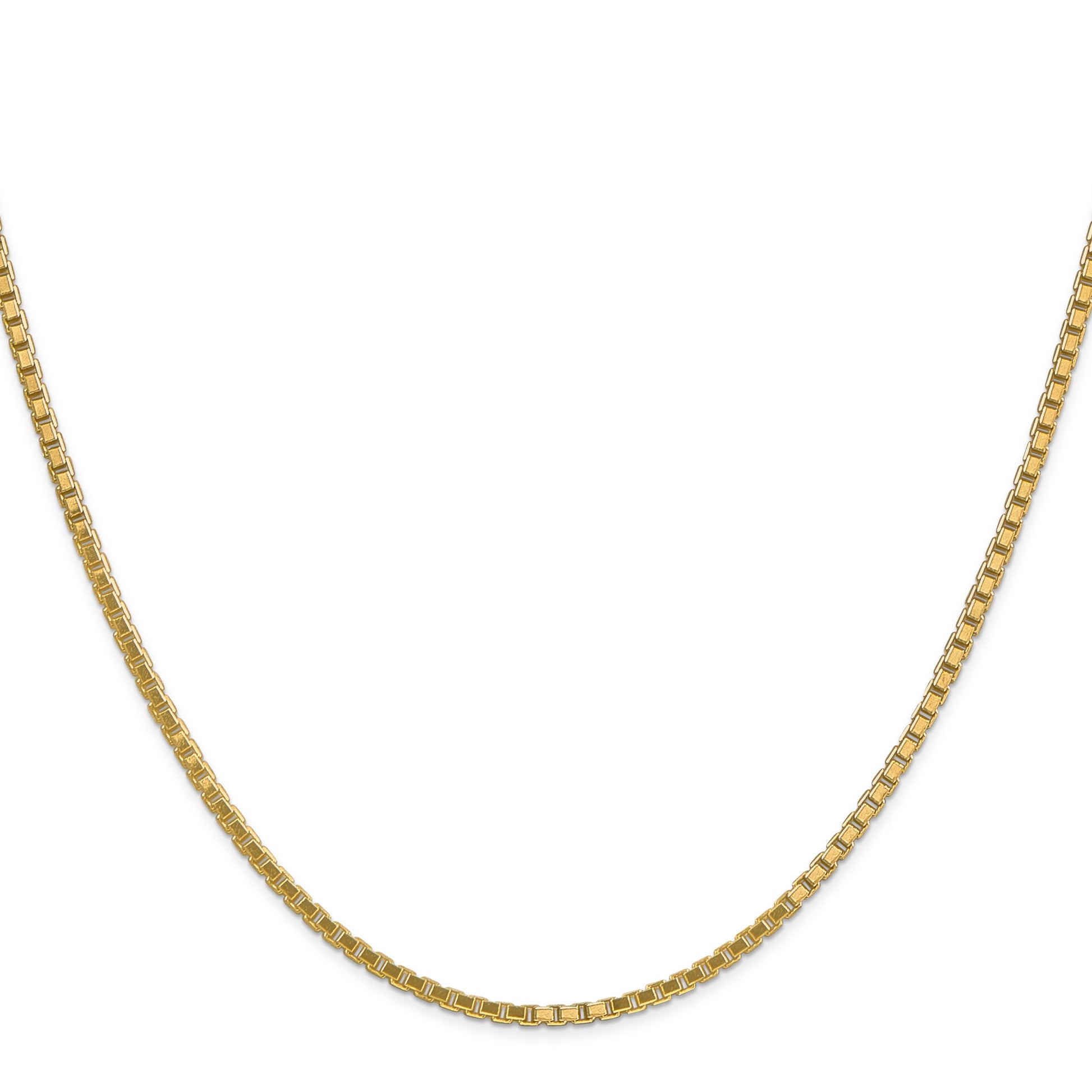 The 14K Yellow Gold 22 Inch 1.9mm Box With Lobster Clasp Chain radiates elegance and quality. Crafted from pure 14K yellow gold, this polished chain offers a timeless shine and durability. Measuring 22 inches in length and 1.9mm in width, its box chain design ensures strength and minimal tangling. The lobster clasp not only adds a secure closure but also enhances its refined appeal. Perfect for any occasion, this chain serves as a stunning standalone piece or paired with your favorite pendant. Add a touch of luxury to your collection with the 14K Yellow Gold 22 Inch 1.9mm Box With Lobster Clasp Chain.