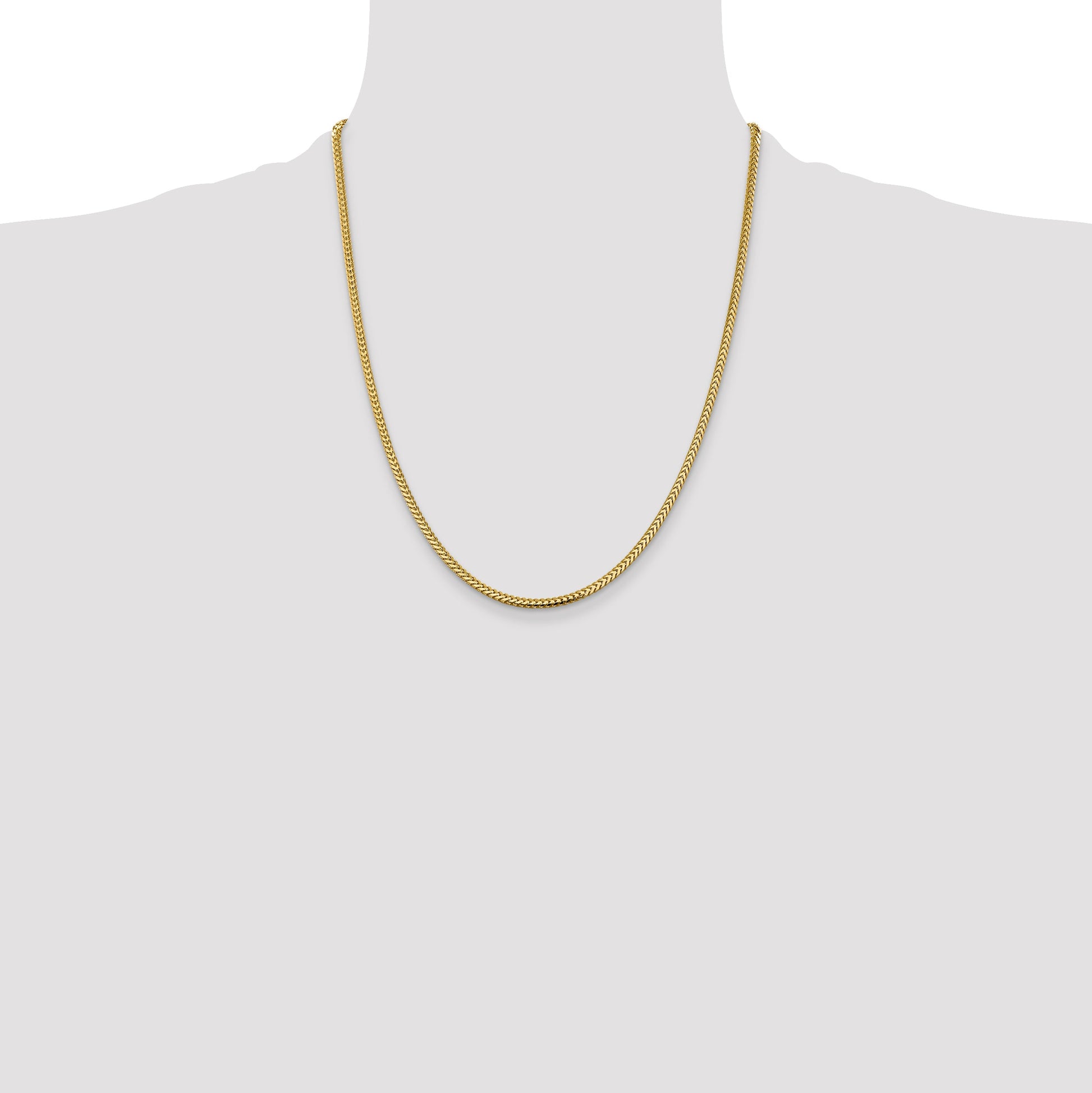 The 14K Yellow Gold 14K 22 Inch 2.3mm Franco With Lobster Clasp Chain is a stunning piece perfect for everyday wear. Crafted from solid 14K gold, it offers durability and a warm, rich shine. The 22-inch length makes it versatile, ideal for layering or wearing alone. Its 2.3mm width provides a sleek, refined look while remaining lightweight. The secure lobster clasp ensures it stays in place, giving you peace of mind. This chain is a timeless addition to any jewelry collection, blending quality and style seamlessly. The 14K Yellow Gold 14K 22 Inch 2.3mm Franco With Lobster Clasp Chain truly stands out as a go-to accessory.