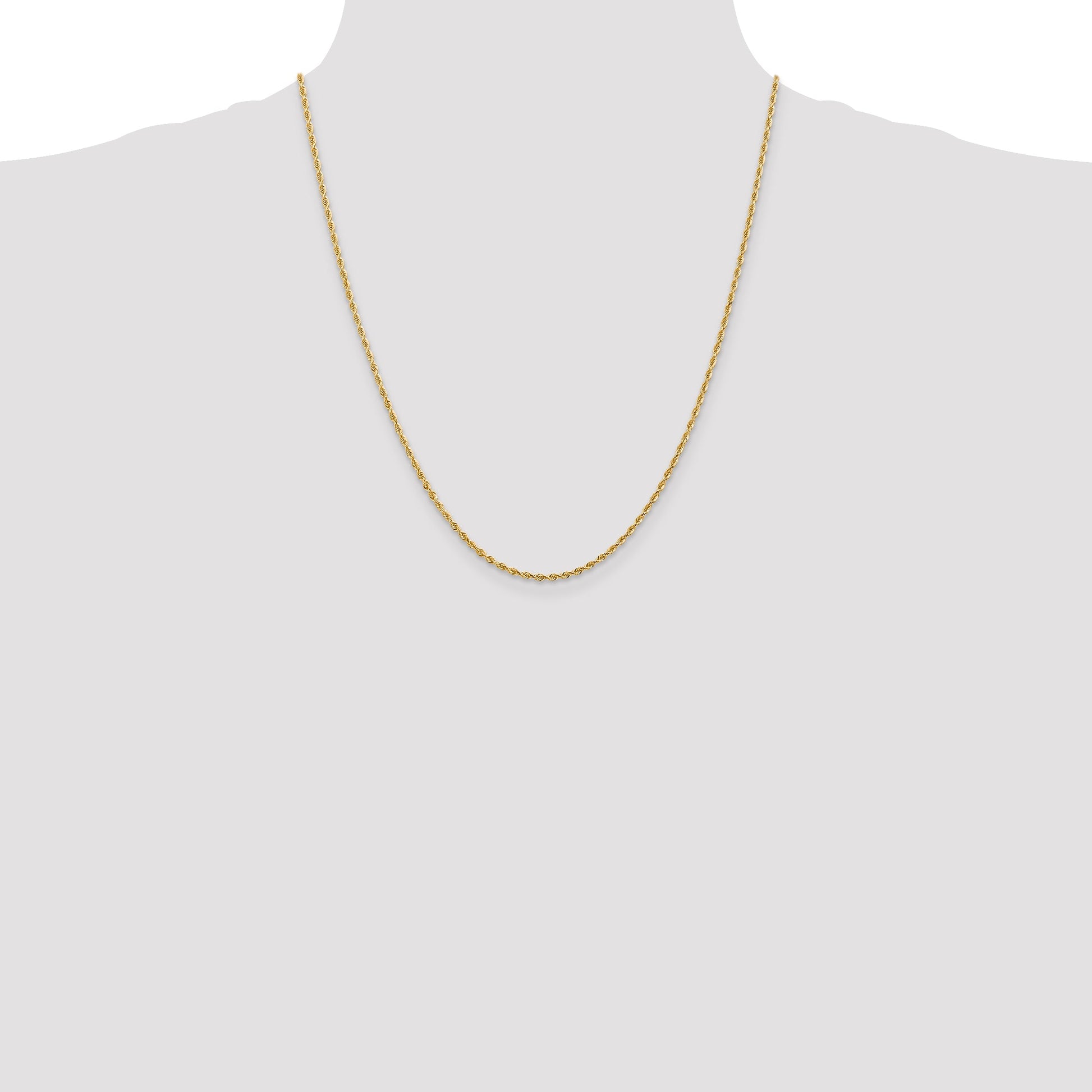 Introducing the 14K Yellow Gold 22 Inch 2mm Diamond-Cut Quadruple Rope Lobster Clasp Chain. This stunning piece boasts a polished finish that gleams with elegance. Crafted from solid 14K gold, the diamond-cut texture of the quadruple rope chain adds an exquisite touch, ensuring you stand out. The 22-inch length drapes beautifully around the neck, making it an ideal accessory for any occasion. Featuring a sturdy lobster clasp, this chain ensures ease of wear and security. Let the 14K Yellow Gold 22 Inch Quadruple Rope Chain be the highlight of your jewelry collection.