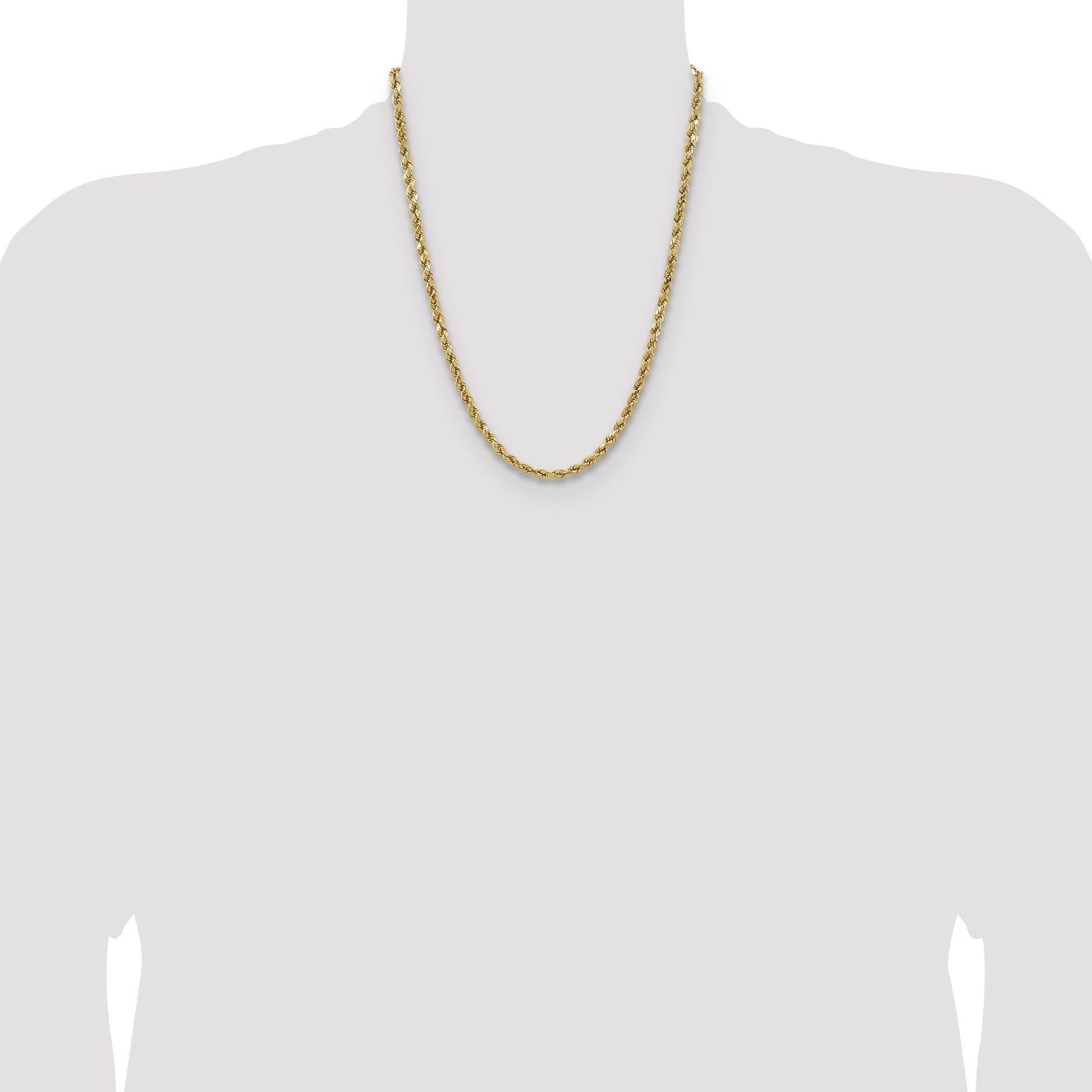 Introducing the 14K Yellow Gold 22 Inch 4.9mm Semi Solid Diamond-Cut Rope Chain, a piece that radiates timeless elegance and style. Crafted from high-quality 14K gold, this polished necklace features a diamond-cut texture that sparkles in the light. The 4.9mm width ensures it's noticeable yet refined, perfect for any occasion. The sturdy lobster clasp not only provides secure fastening but adds to its sleek design. At 22 inches, it rests comfortably around the neck, making it ideal for both men and women. Elevate your jewelry collection with the 14K Yellow Gold 22 Inch 4.9mm Semi Solid Diamond-Cut Rope Chain.