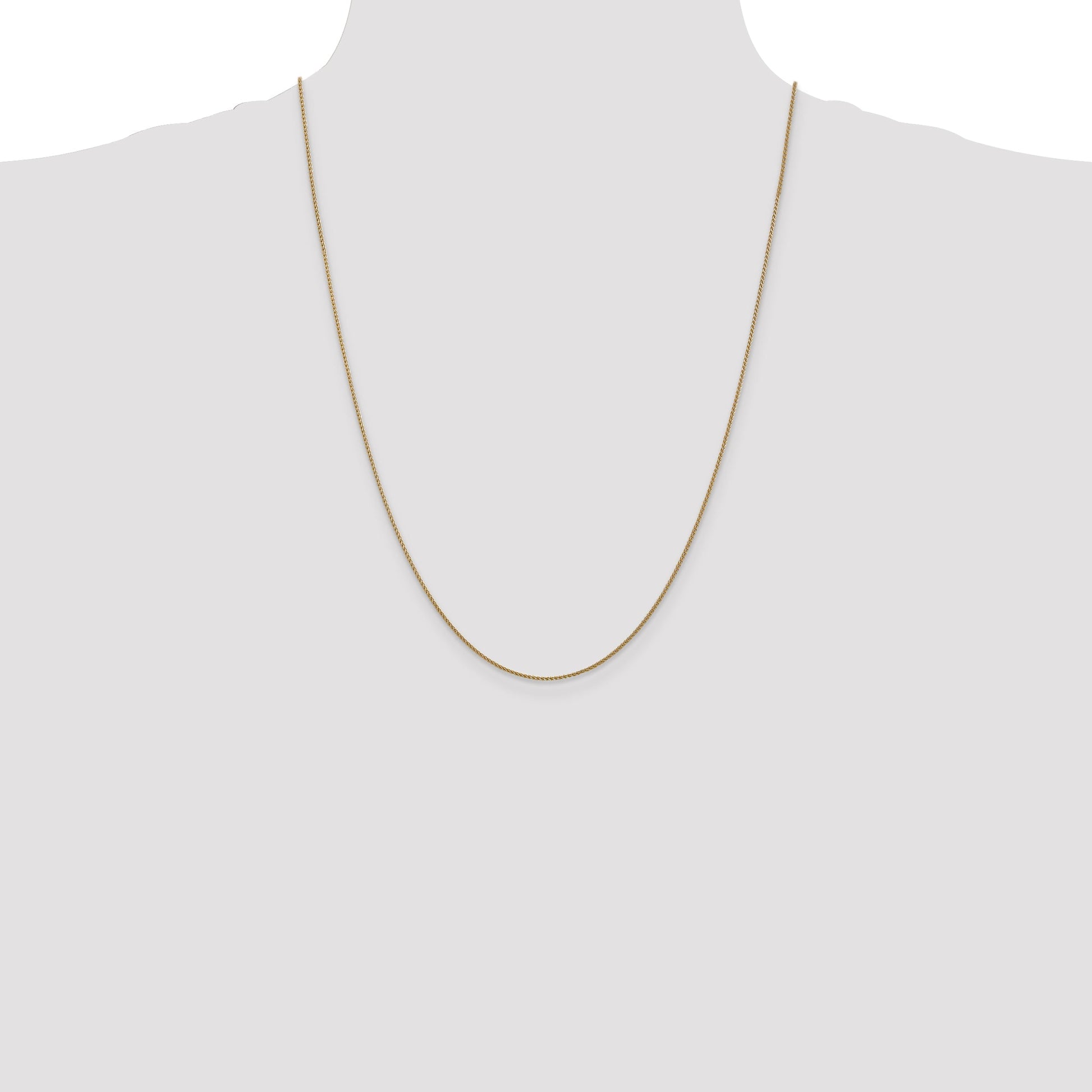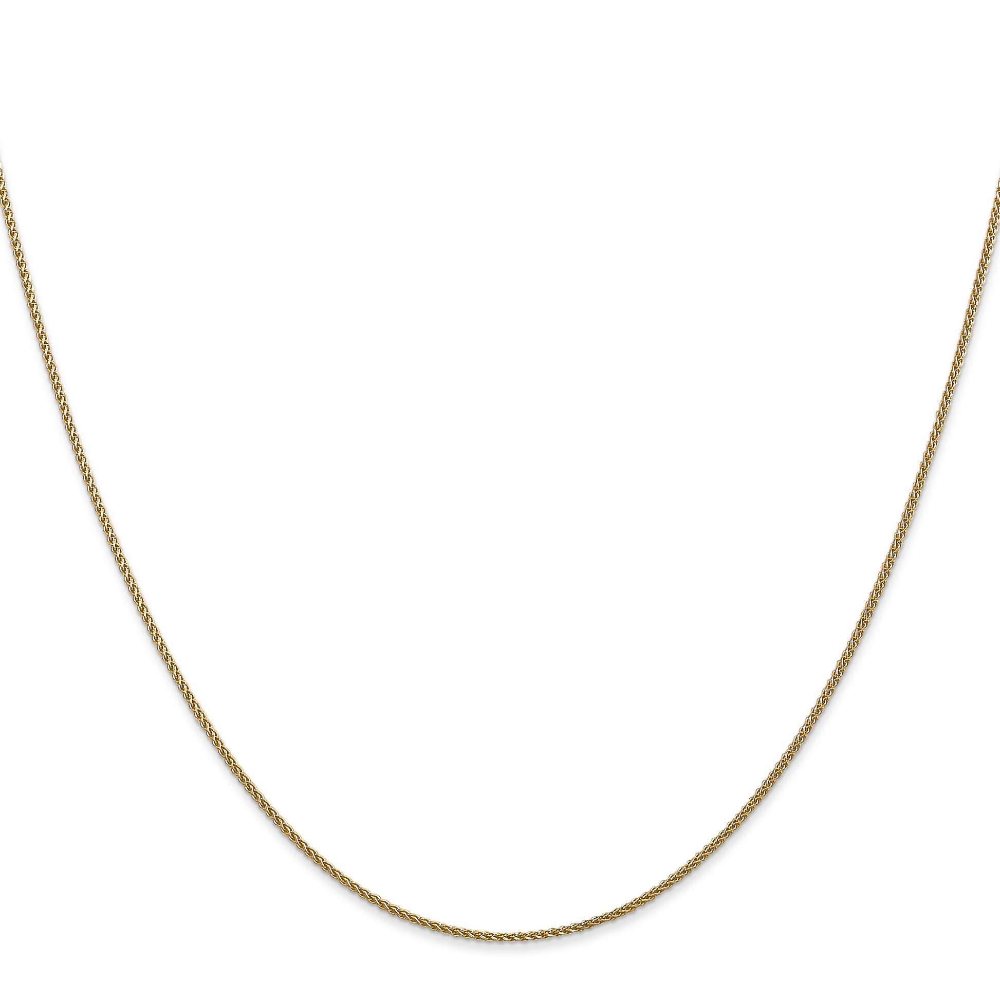 The 14K Yellow Gold 24 Inch 1.05mm Diamond-Cut Spiga Chain elevates any jewelry collection with its stunning shine. Crafted from high-quality 14K gold, this necklace features a diamond-cut Spiga, also known as wheat chain, that catches the light beautifully. The chain measures a versatile 24 inches and boasts a sleek width of 1.05mm, making it perfect for both casual and formal occasions. Its polished finish and solid, robust construction ensure it will remain a cherished piece for years. Finished with a secure lobster clasp, the 14K Yellow Gold 1.05mm Spiga Chain makes an ideal gift or personal treasure.