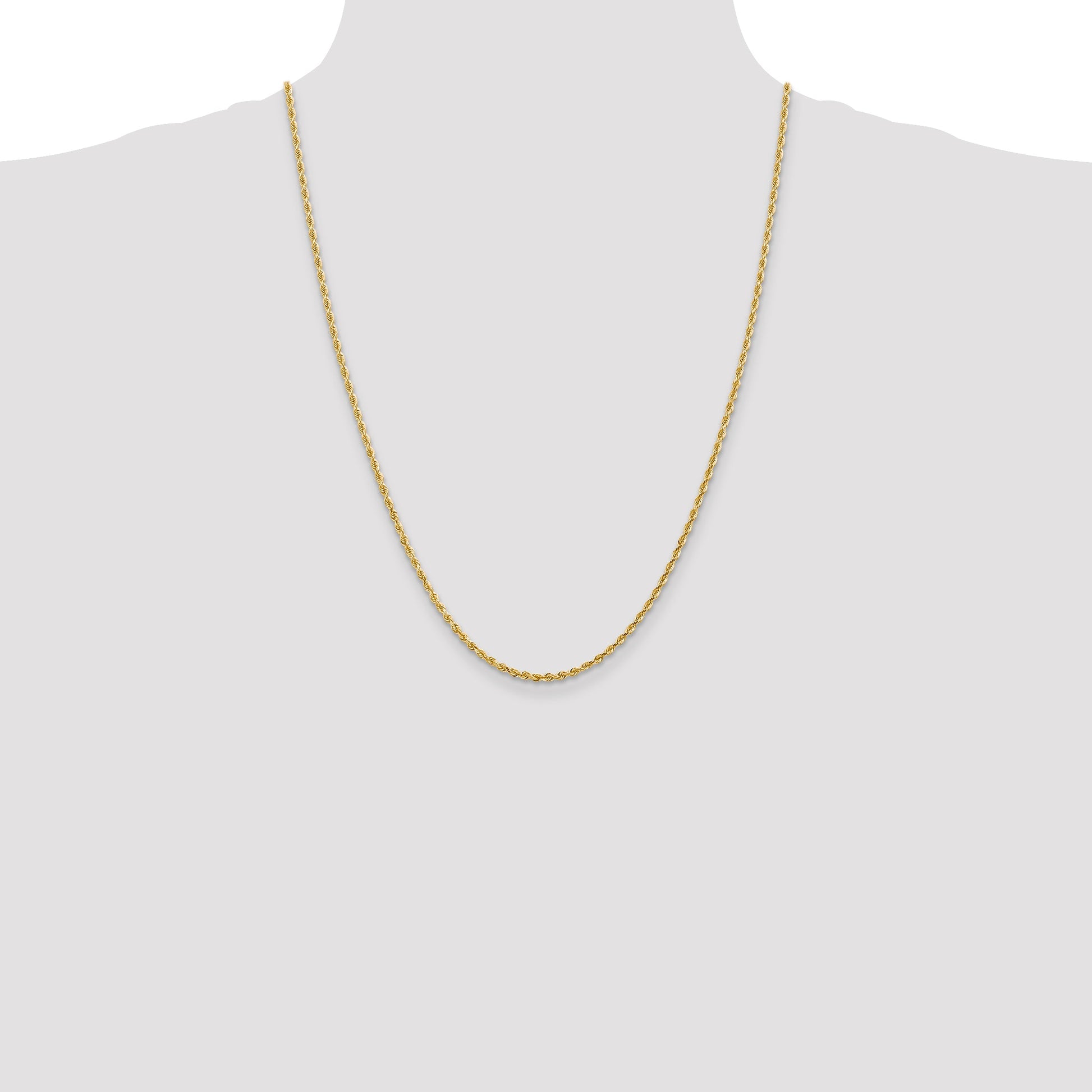 This 14K Yellow Gold 24 Inch Diamond-Cut Quadruple Rope Chain features a polished finish that gleams with elegance. Designed for those who appreciate exquisite craftsmanship, its solid construction adds durability and lasting style. The chain's 2.25mm width provides a delicate yet noticeable presence, perfect for everyday wear or special occasions. Secure your look with the lobster clasp that ensures convenience and peace of mind. Enjoy the brilliant texture of the diamond-cut surface that catches the light beautifully. Show off your unique taste and elevate your jewelry collection with this stunning 14K Yellow Gold 24 Inch Rope Chain.