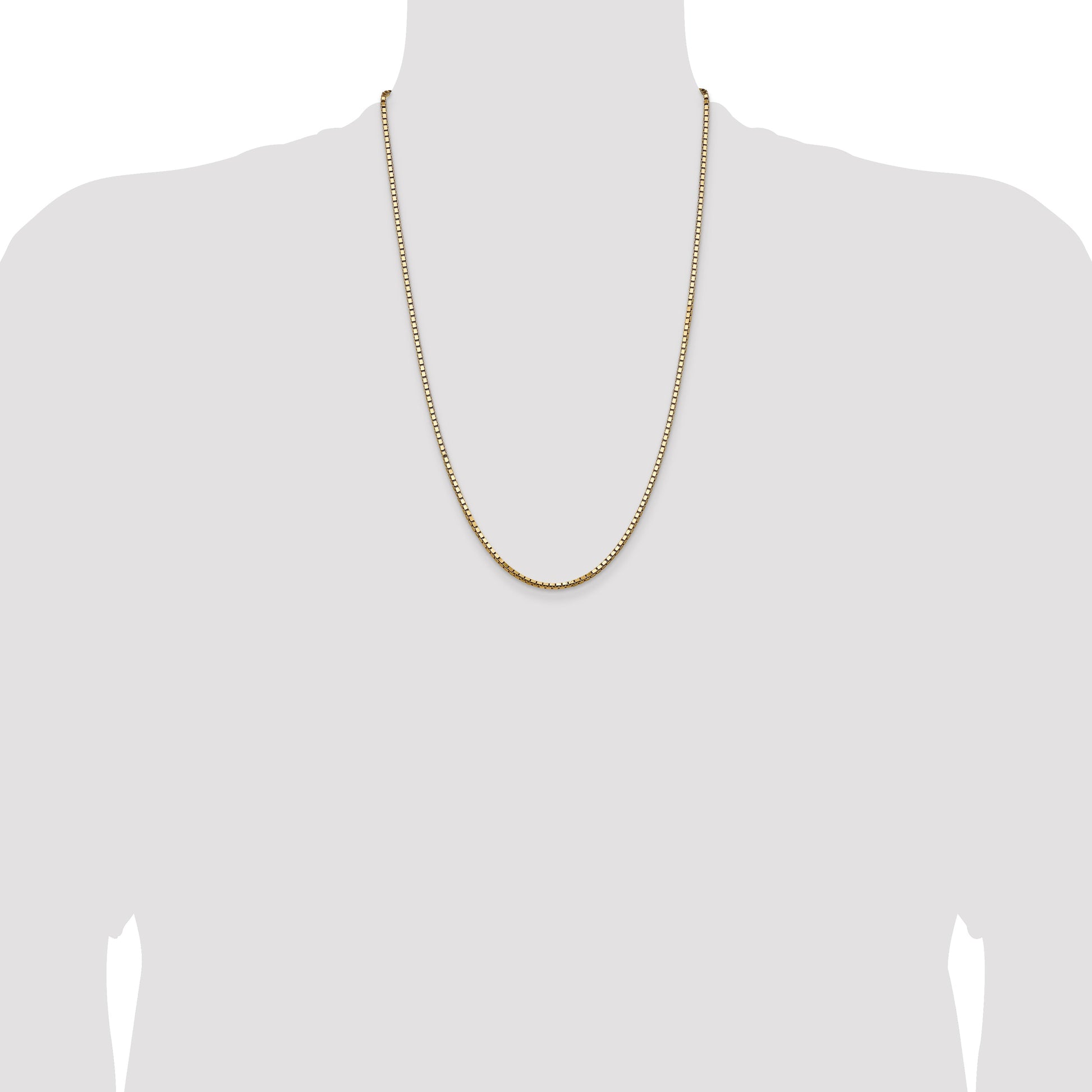 The 14K Yellow Gold 24-Inch 2.5mm Box Chain with Lobster Clasp radiates elegance and strength. Crafted from premium 14K gold, this polished gem boasts a sleek 2.5mm width, making it a refined choice for any occasion. The 24-inch length offers versatility, while the lobster clasp ensures secure wear. Machine-made with expert precision and die-struck for added durability, this chain combines style and resilience. Ideal for daily wear or special events, the 14K Yellow Gold 24-Inch 2.5mm Box Chain with Lobster Clasp is a timeless addition to any jewelry collection.