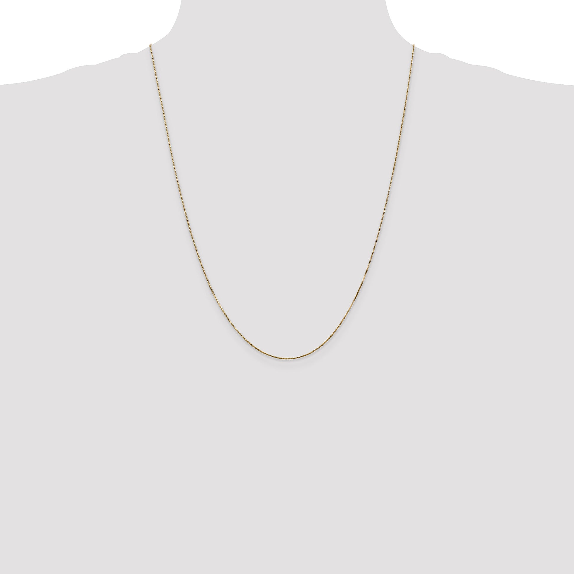 The 14K Yellow Gold 24-Inch 0.85mm Diamond-Cut Spiga Chain offers a touch of elegance and sophistication to any ensemble. Crafted with 14K gold, this chain gleams with a polished finish. It is 24 inches long and features a delicate yet durable diamond-cut wheat design, making it a standout piece. The slim 0.85mm width showcases subtlety, while the lobster clasp ensures a secure fit. Perfectly suited for women seeking timeless style, this chain complements any pendant or shines solo. The 14K Yellow Gold 24-Inch Diamond-Cut Spiga Chain is a must-have for any jewelry collection.