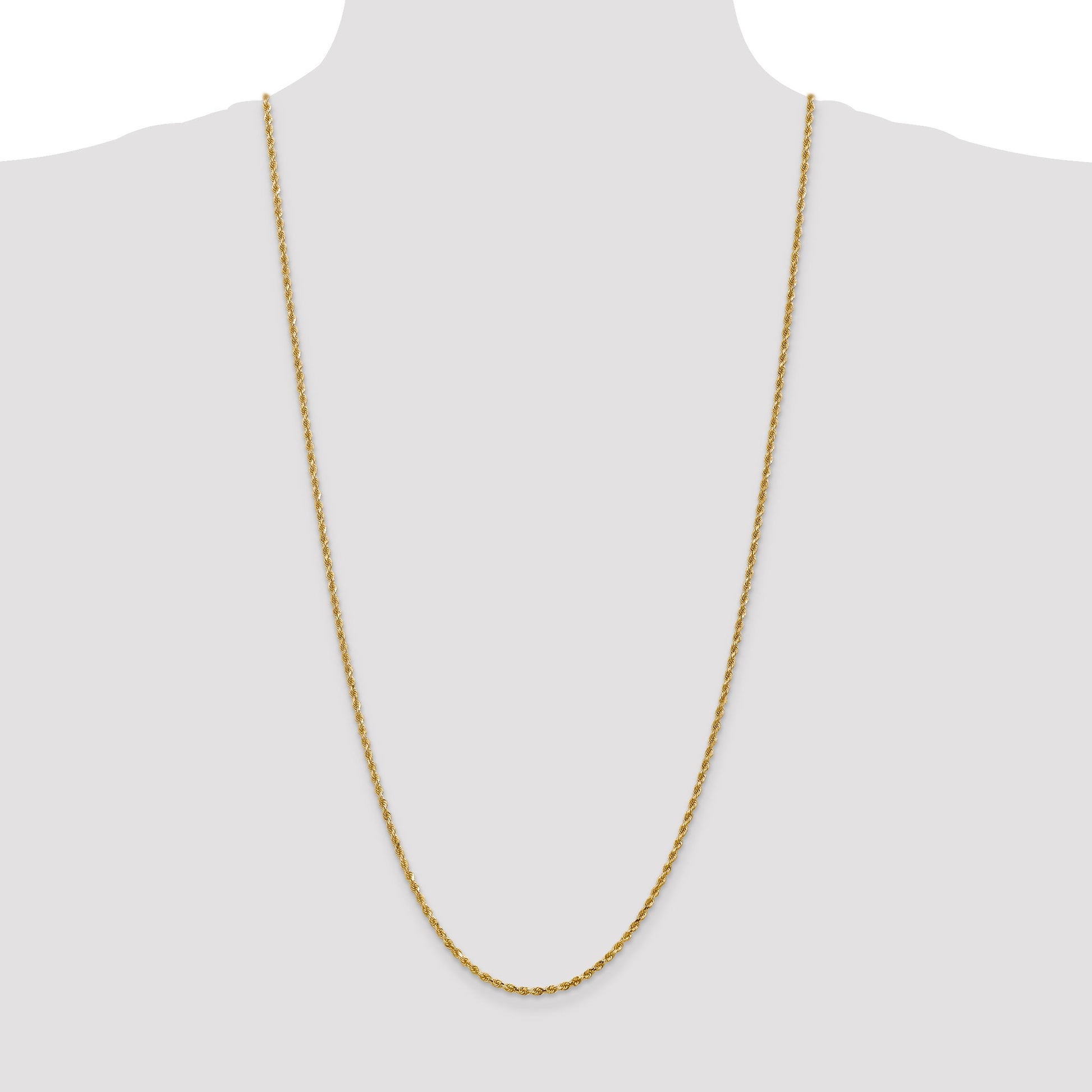 The 14K Yellow Gold 14K 2.5mm Diamond-Cut Rope Chain is a stylish piece that adds shine to any look. Crafted from solid 14-karat gold, it features a polished finish and a unique diamond-cut texture that catches the light with every move. This 30-inch chain is made with a sturdy lobster clasp to keep it secure. Its sleek 2.5mm width makes it perfect for everyday wear or layering with other jewelry. Designed for durability, the jewelry comes with a lifetime guarantee, ensuring you enjoy a stunning and reliable piece for years to come. The 14K Yellow Gold 14K 2.5mm Diamond-Cut Rope Chain is a must-have for elevating your style.
