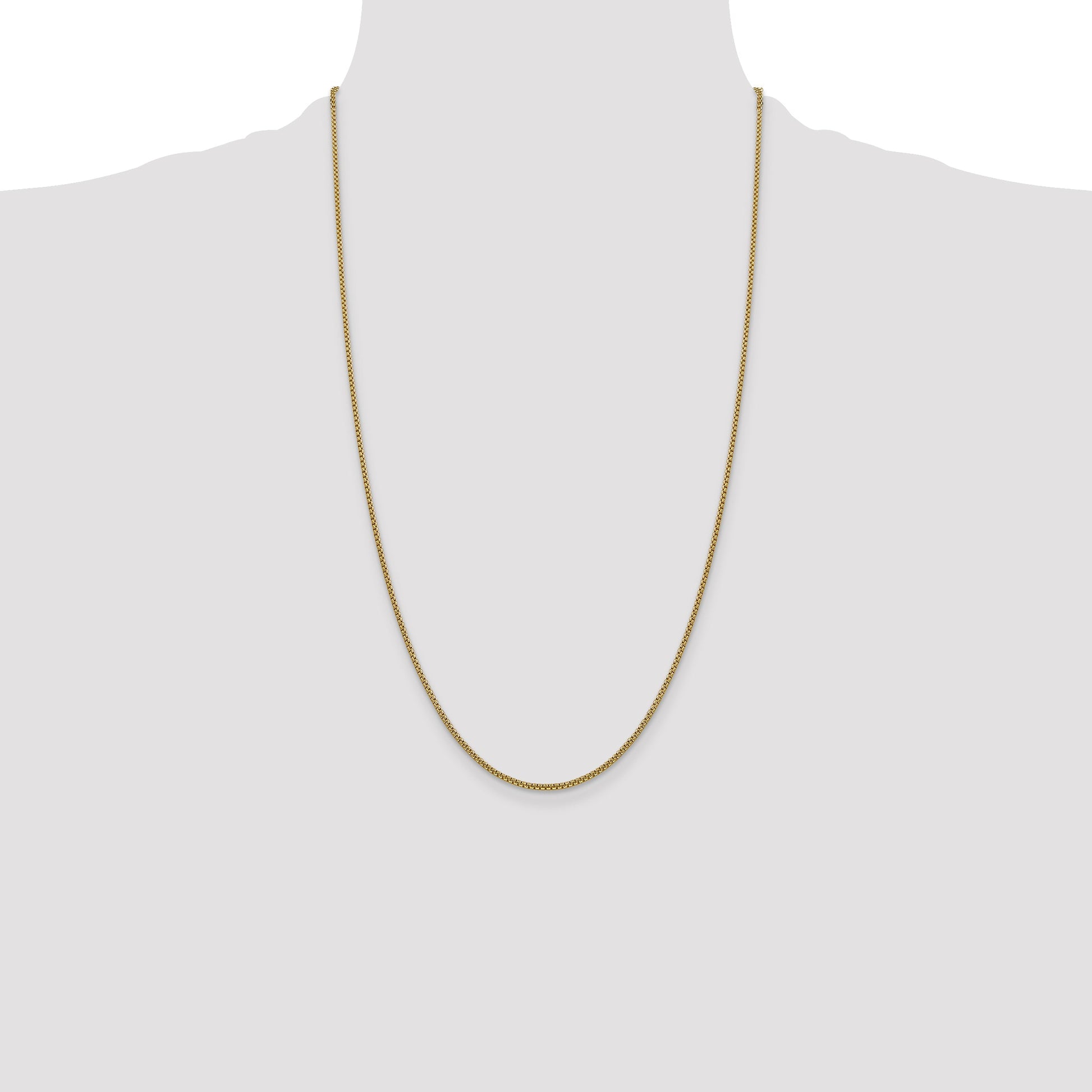 The 14K Yellow Gold 26 Inch 1.5mm Semi-Solid Round Box Chain is the epitome of elegance. Crafted from polished 14K gold, this chain gleams beautifully in any light. It measures 26 inches in length and 1.5mm in width, offering a delicate yet durable design. The lobster clasp ensures a secure fit, making it a reliable accessory for everyday wear. The semi-solid structure adds to its resilience without compromising its refined look. Machine-made for precision, the 14K Yellow Gold 26 Inch 1.5mm Semi-Solid Round Box Chain is a timeless piece for any jewelry collection.