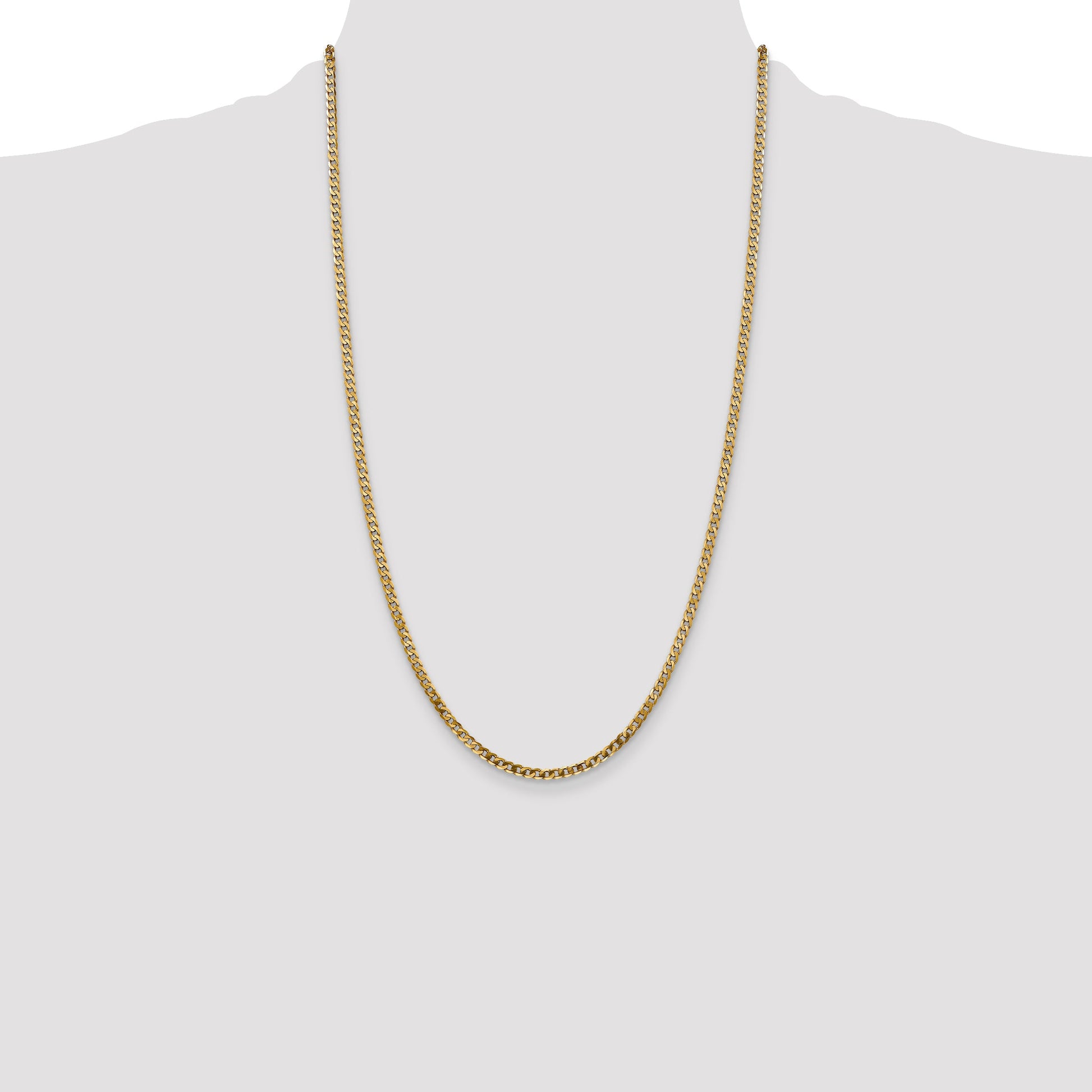 Introducing the 14K Yellow Gold 26-Inch 2.9mm Flat Beveled Curb Chain, a stunning piece for any fine jewelry aficionado. Crafted from solid 14K gold, this chain features a polished finish that adds brilliance to its yellow hue. The design incorporates a flat beveled edge, offering a modern twist to the classic curb style. Its 26-inch length and 2.9mm width make it versatile for layering or standalone wear. This necklace is secured with a reliable lobster clasp, ensuring both style and function. Elevate your collection with this beautiful 14K Yellow Gold 26-Inch Flat Beveled Curb Chain.