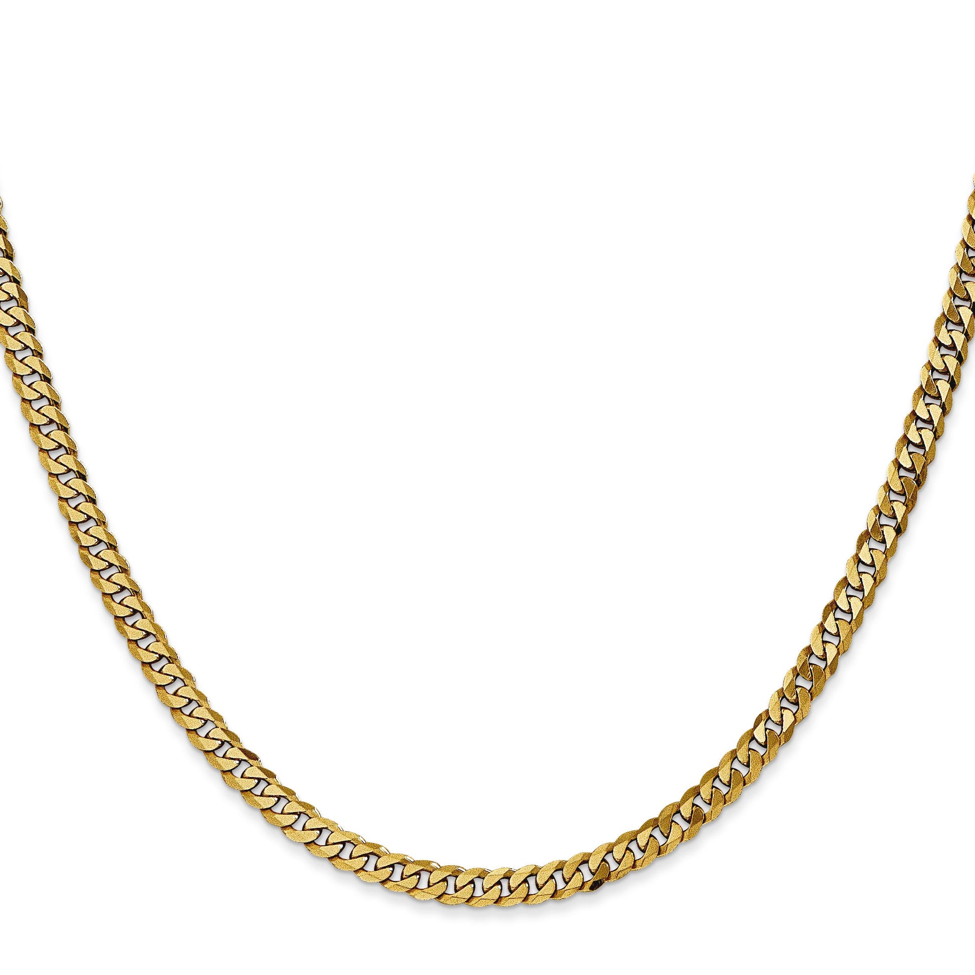 Elevate your style with the 14K Yellow Gold 26 Inch 3.9mm Flat Beveled Curb Chain. This exquisite piece gleams with a polished finish that catches the light beautifully. It's crafted from quality 14K gold, ensuring both durability and timeless appeal. With its 26-inch length, it drapes elegantly around the neck, making it perfect for layering or standalone wear. The 3.9mm width adds a bold touch, while the beveled edges offer a refined look. The lobster clasp ensures a secure fit. Enhance any outfit with this stunning 14K Yellow Gold chain.