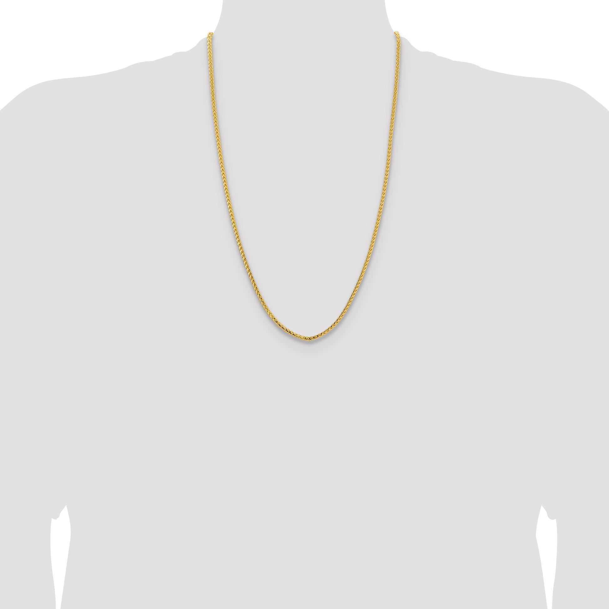 The 14K Yellow Gold 14K 26 Inch 3mm Franco With Fancy Lobster Clasp Chain is a sleek and stylish necklace designed for women. Made from solid 14K gold, it offers a rich yellow hue that catches the eye. The chain measures 26 inches long and features a comfortable 3mm width, blending strength with elegance. The Franco design adds a classic touch, while the fancy lobster clasp ensures secure wear. Handmade with care, this chain is perfect for everyday use or special occasions. Elevate your jewelry game with the 14K Yellow Gold 14K 26 Inch 3mm Franco Chain – a versatile piece for any wardrobe.