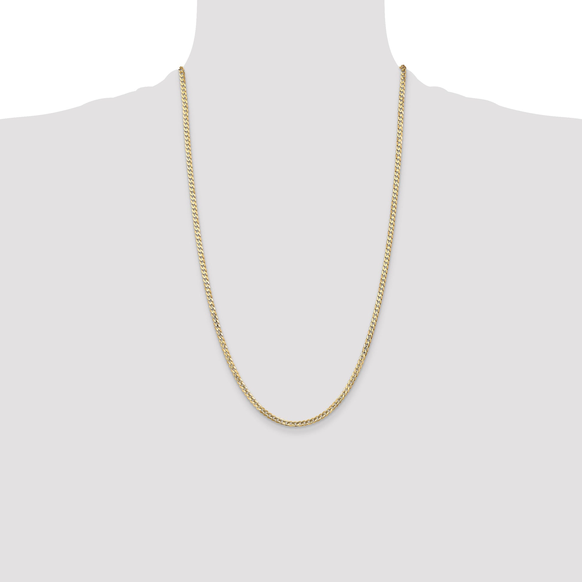 The 14K Yellow Gold 26-Inch 3mm Open Concave Curb Chain is a captivating piece of fine jewelry any woman would cherish. Crafted from 14K gold, this necklace shines with an alluring polish that highlights its exquisite craftsmanship. The 26-inch length and 3mm width offer a bold yet elegant look, making it perfect for any occasion. The chain's open curb design lends an air of sophistication, while the secure lobster clasp ensures it stays in place. This carefully casted and machine-made piece flaunts durability and timeless style. The 14K Yellow Gold 26-Inch Open Concave Curb Chain promises to elevate your jewelry collection.
