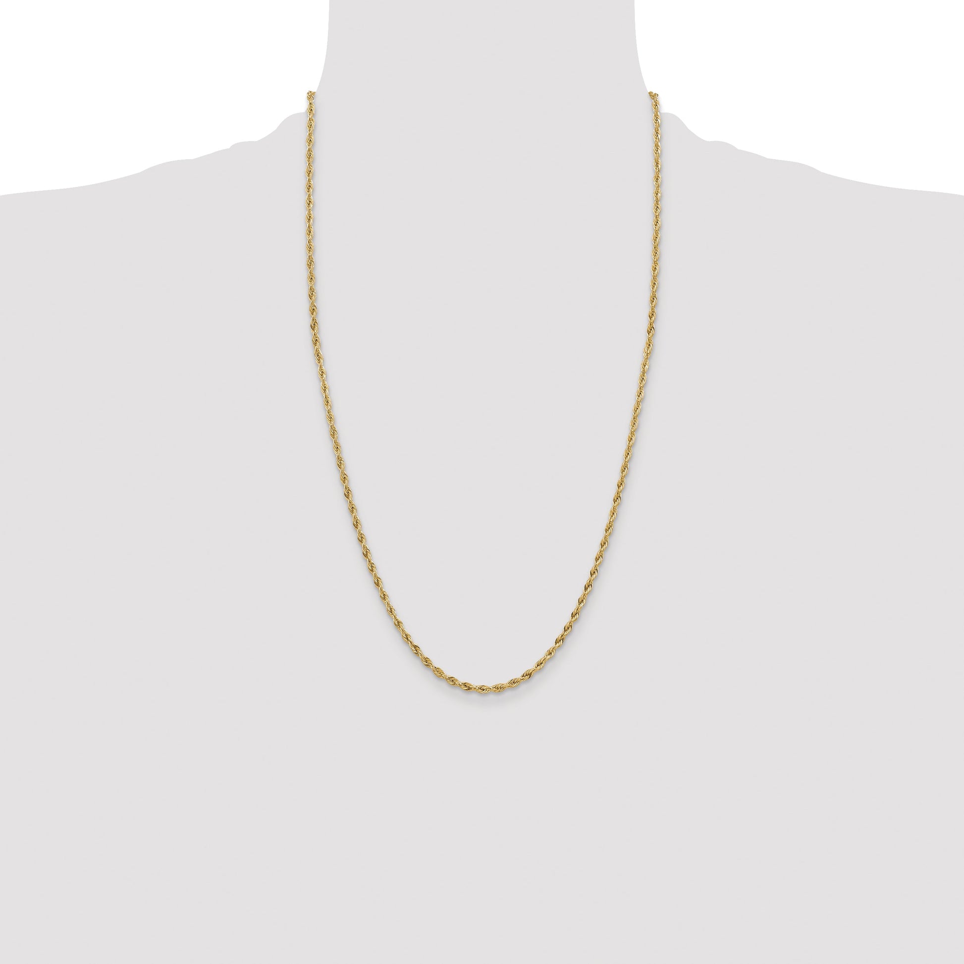 Discover timeless elegance with our 14K Yellow Gold 26-Inch Semi Solid Rope Chain. Crafted from high-quality 14K gold, this chain showcases a polished finish that gleams with every movement. Featuring a 3mm width, its intricate rope design adds a touch of sophistication to any outfit. The secure lobster clasp ensures it stays in place, offering both beauty and durability. Perfect for everyday wear or special occasions, the 14K Yellow Gold 26-Inch Semi Solid Rope Chain is a must-have addition to your jewelry collection.