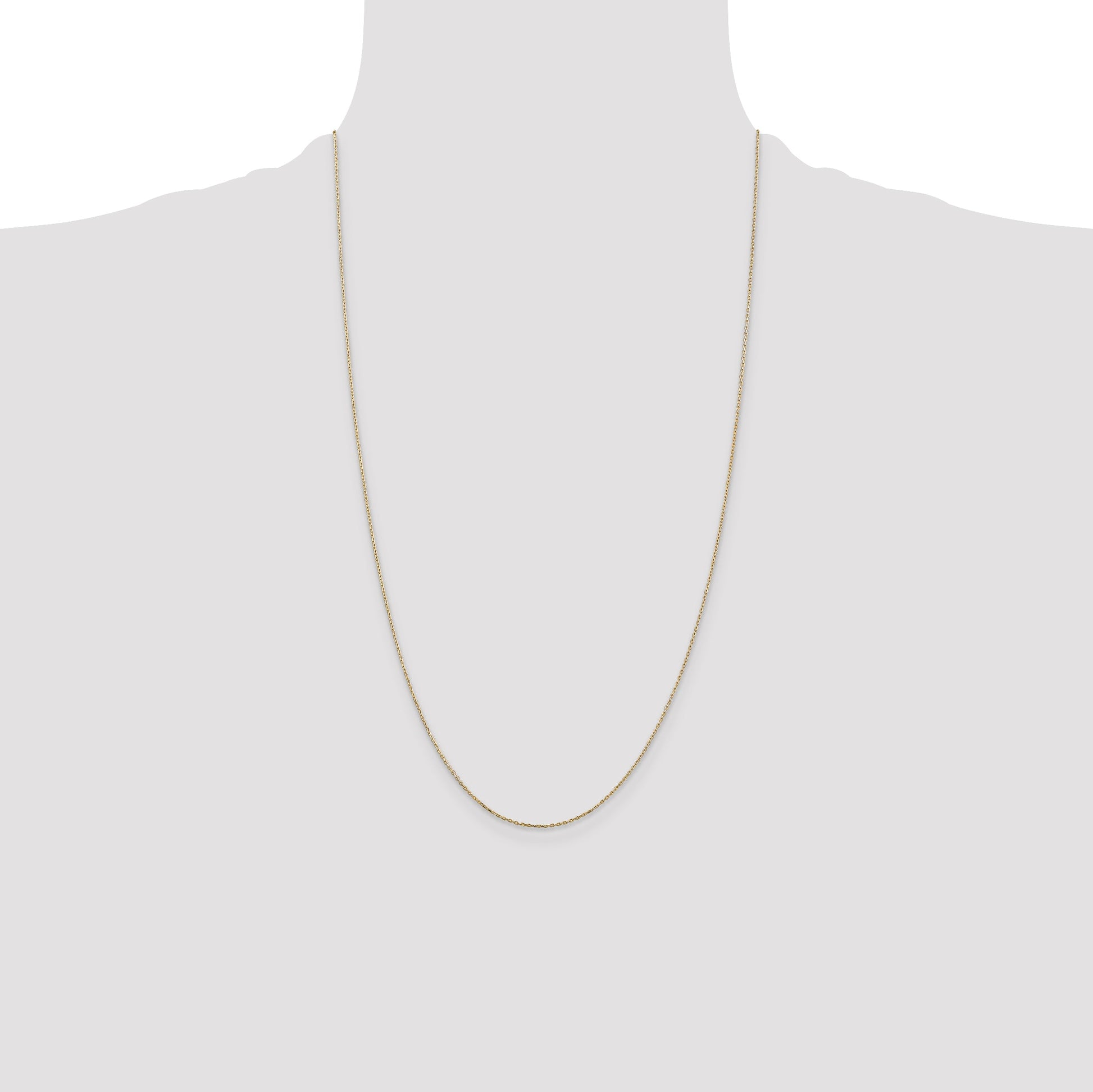Elevate your jewelry collection with the 14K Yellow Gold 26 Inch Diamond-Cut Cable Chain. This exquisite piece of fine jewelry, crafted with precision, features a solid 0.8mm cable chain made from radiant 14K yellow gold. The polished diamond-cut texture adds a touch of elegance, catching the light with every movement. Measuring 26 inches in length, this chain is perfect for layering or wearing alone. The durable lobster clasp ensures the necklace stays secure, making it a reliable choice for everyday wear. Discover timeless beauty with the 14K Yellow Gold Diamond-Cut Cable Chain.