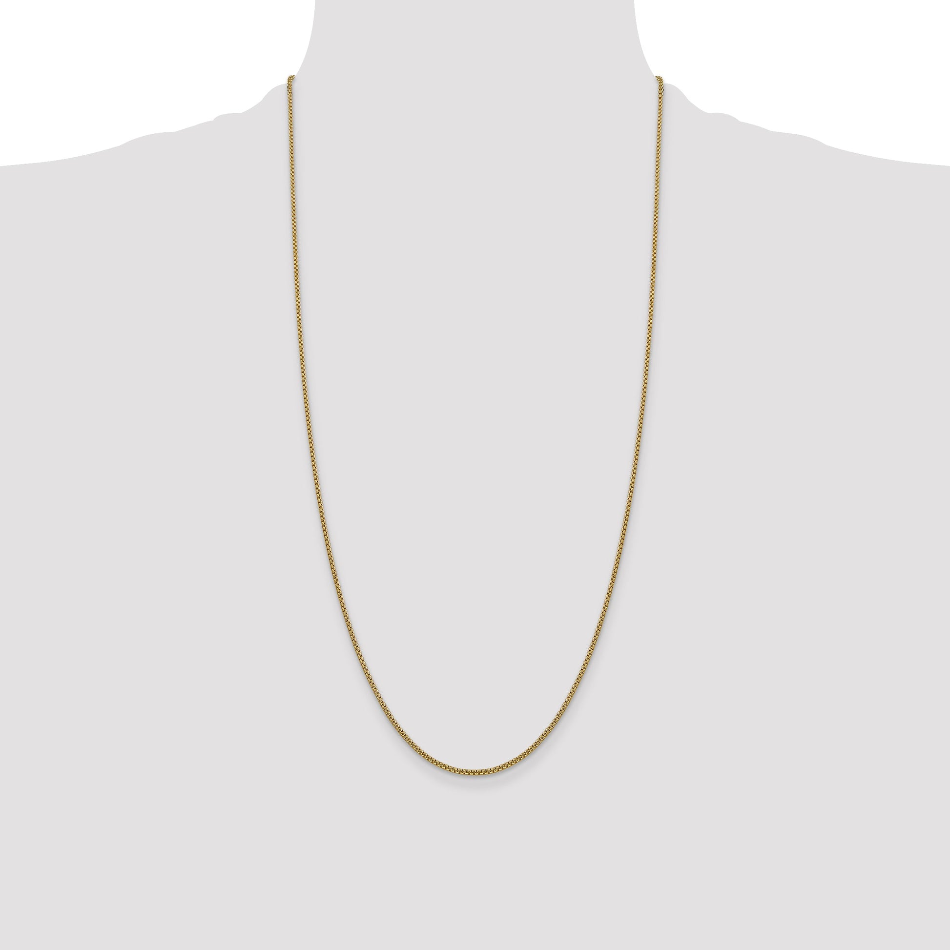 Introducing the elegant 14K Yellow Gold 28 Inch 1.5mm Semi-Solid Round Box Chain. This polished box chain shines in 14K yellow gold, offering a sleek 28-inch length. Ideal for daily wear, its 1.5mm width and semi-solid design embody both style and durability. The lobster clasp ensures it's secure and easy to wear. Expertly machine-made, this chain stands out with its refined craftsmanship. Elevate your jewelry collection with the timeless charm of the 14K Yellow Gold 28 Inch 1.5mm Semi-Solid Round Box Chain.