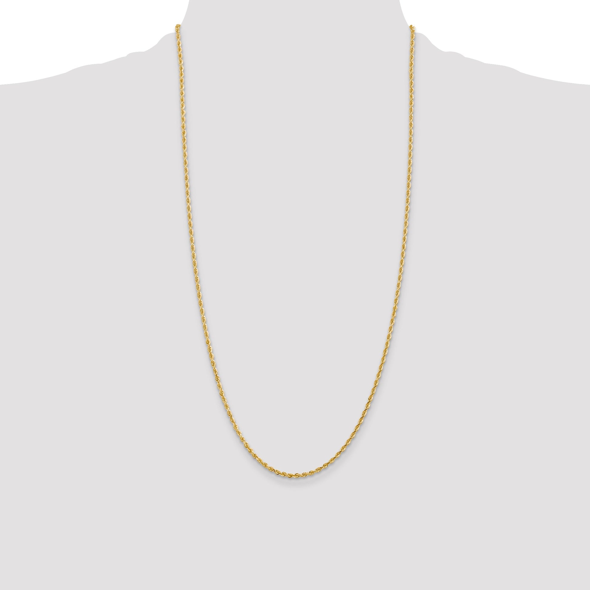 Step up your style game with the stunning 14K Yellow Gold 28 Inch 2.25mm Diamond-Cut Quadruple Rope Lobster Clasp Chain. This beautifully crafted women's necklace, made from fine 14K gold, shines with its polished finish and unique diamond-cut texture. Measuring 28 inches long, this solid rope chain stays secure with a reliable lobster clasp. Its modest width of 2.25mm adds a subtle touch of elegance, making it perfect for layering or wearing alone. The 14K Yellow Gold 28 Inch Diamond-Cut Quadruple Rope Chain is where sophistication meets everyday wear.