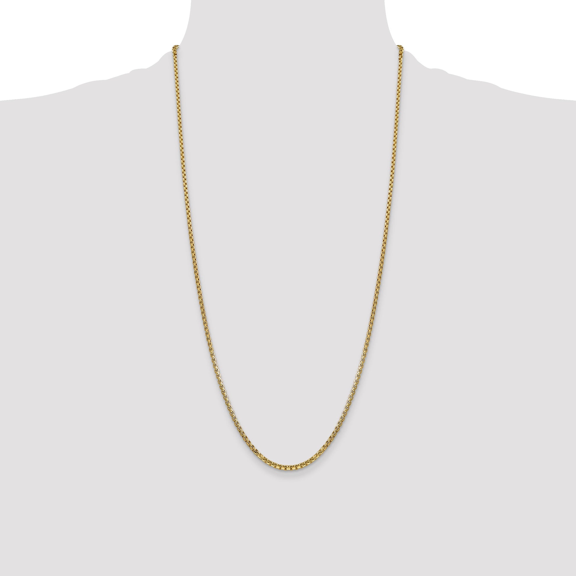 The 14K Yellow Gold 28 Inch 2.45mm Semi-Solid Round Box Chain offers a timeless touch to any outfit. Crafted with polished 14K gold, this chain shines brilliantly and complements a chic or casual look. Measuring 28 inches in length with a 2.45mm width, it showcases both elegance and durability. The lobster clasp ensures secure wear, while the semi-solid structure provides a perfect balance of strength and flexibility. Add this versatile 14K Yellow Gold 28 Inch 2.45mm Semi-Solid Round Box Chain to your jewelry collection for an effortlessly polished style.