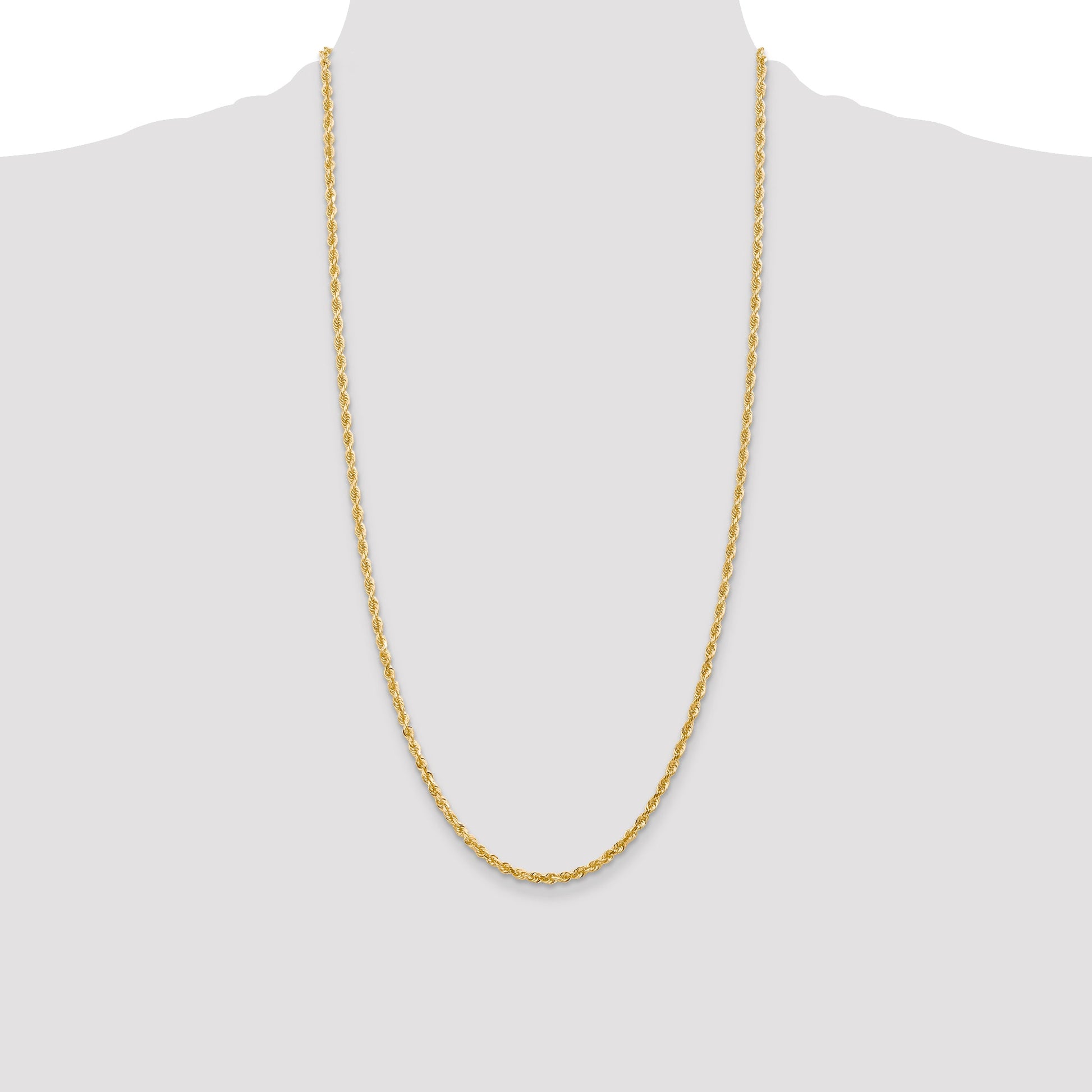 Embrace elegance with the 14K Yellow Gold 28 Inch 3mm Diamond-Cut Quadruple Rope Lobster Clasp Chain. This stunning piece features a radiant 14K gold finish that shines with sophistication. The intricate diamond-cut design adds a unique texture and catches light beautifully, making it perfect for any occasion. At 28 inches long, it drapes gracefully on the neck, and the solid construction ensures durability. The lobster clasp offers a secure closure, while the 3mm quadruple rope design provides a classic yet contemporary look. Turn heads with this timeless 14K Yellow Gold masterpiece.