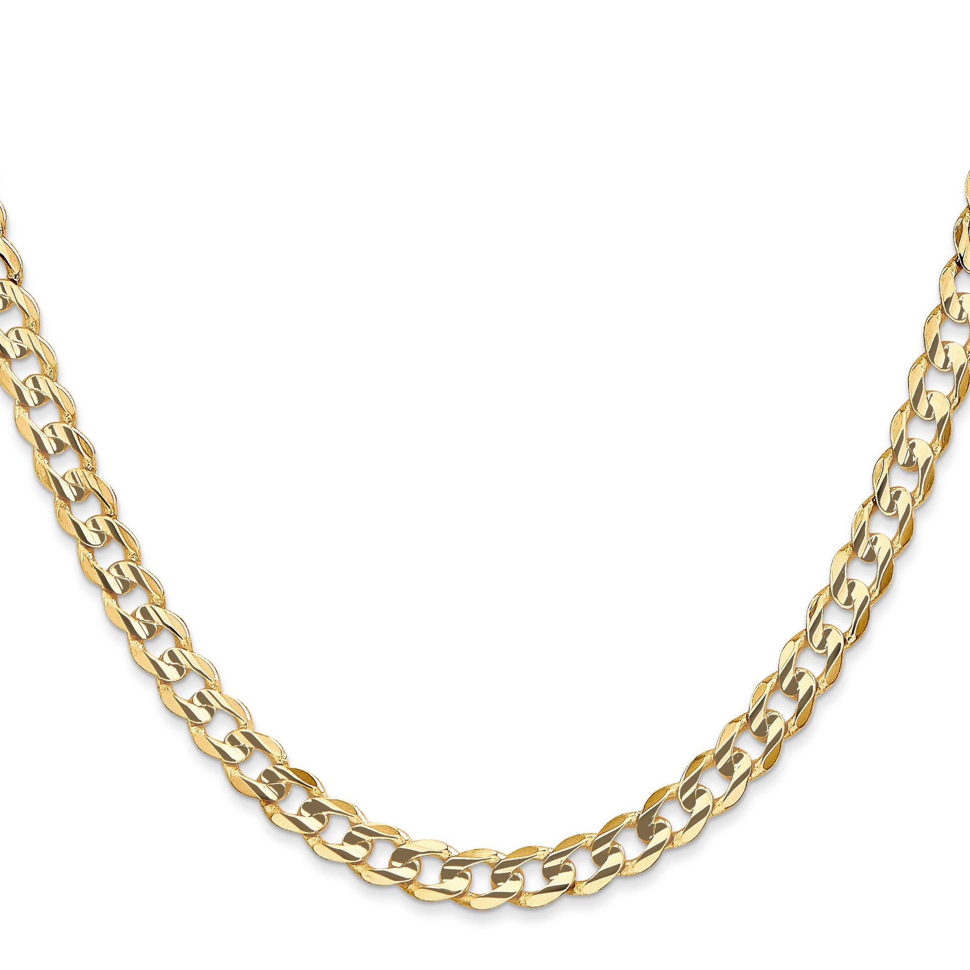 Discover timeless elegance with the 14K Yellow Gold 28-Inch 5.25mm Open Concave Curb Chain. Designed with superior craftsmanship, this polished chain features a stunning concave curb pattern that reflects light beautifully. At 28 inches long, it drapes gracefully around the neck, highlighting its exquisite 5.25mm width. Crafted from solid 14K gold, the chain offers both durability and luxury. The secure lobster clasp ensures it stays in place, making it perfect for everyday wear or special occasions. Elevate your collection with this versatile unisex necklace. The 14K Yellow Gold Open Concave Curb Chain makes a lasting impression.