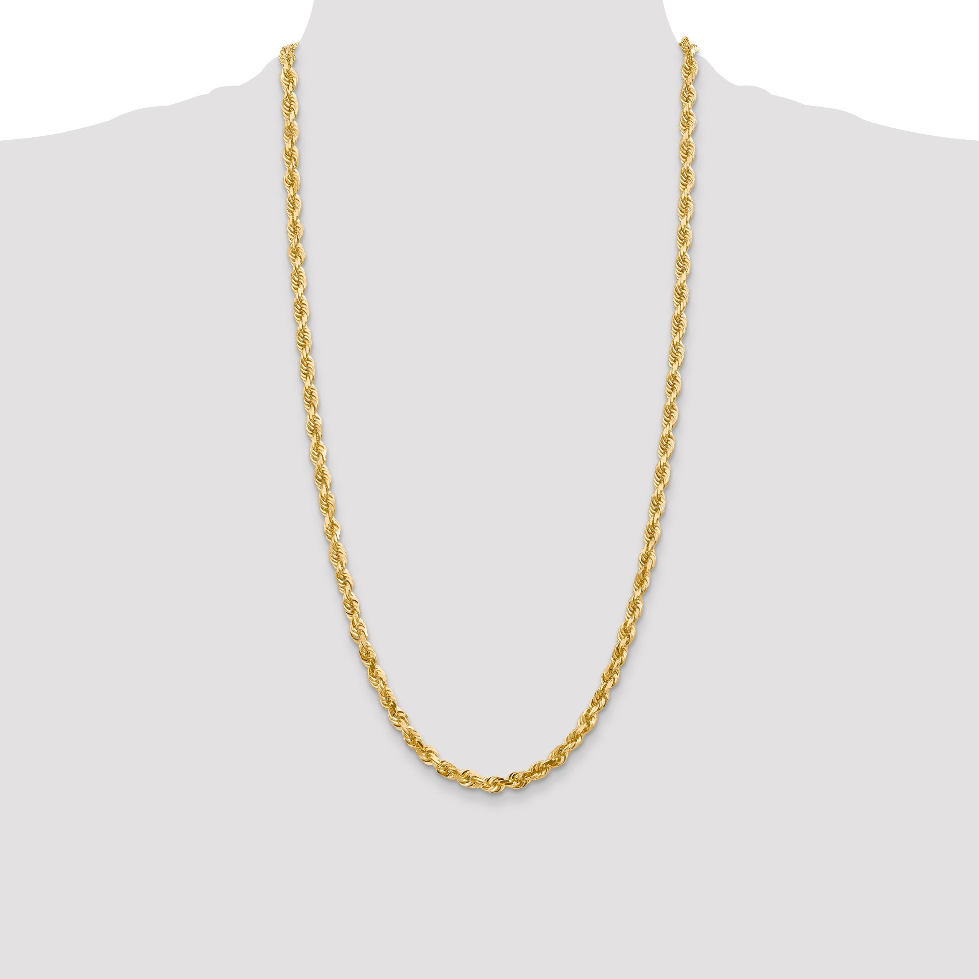 Introducing the stunning 14K Yellow Gold 28 Inch 5mm Diamond-Cut Quadruple Rope Lobster Clasp Chain. Crafted from genuine 14K gold, this chain catches the light with its polished finish and diamond-cut texture. Measuring at a versatile 28 inches in length, the chain's 5mm width offers a bold yet elegant presence. It features a durable lobster clasp, ensuring that it stays securely fastened. This unisex necklace embodies timeless style and sophistication, making it a perfect staple for any jewelry collection. Elevate your look with the exquisite 14K Yellow Gold 28 Inch 5mm Diamond-Cut Quadruple Rope Lobster Clasp Chain.