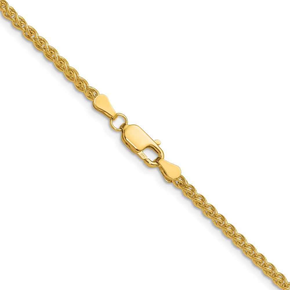 The 14K Yellow Gold 14K 2.8mm Spiga Chain is a timeless piece that adds a touch of elegance to any look. Crafted from solid 14K gold with a polished finish, this 24-inch chain has a sturdy lobster clasp for secure wear. The wheat-style design offers a classic vibe, perfect for daily or special occasions. Its 2.8mm width makes it versatile and easy to layer. Each chain is made through a durable die-struck process to ensure longevity. This high-quality necklace comes with a lifetime guarantee, making it a valuable addition to your jewelry collection.
