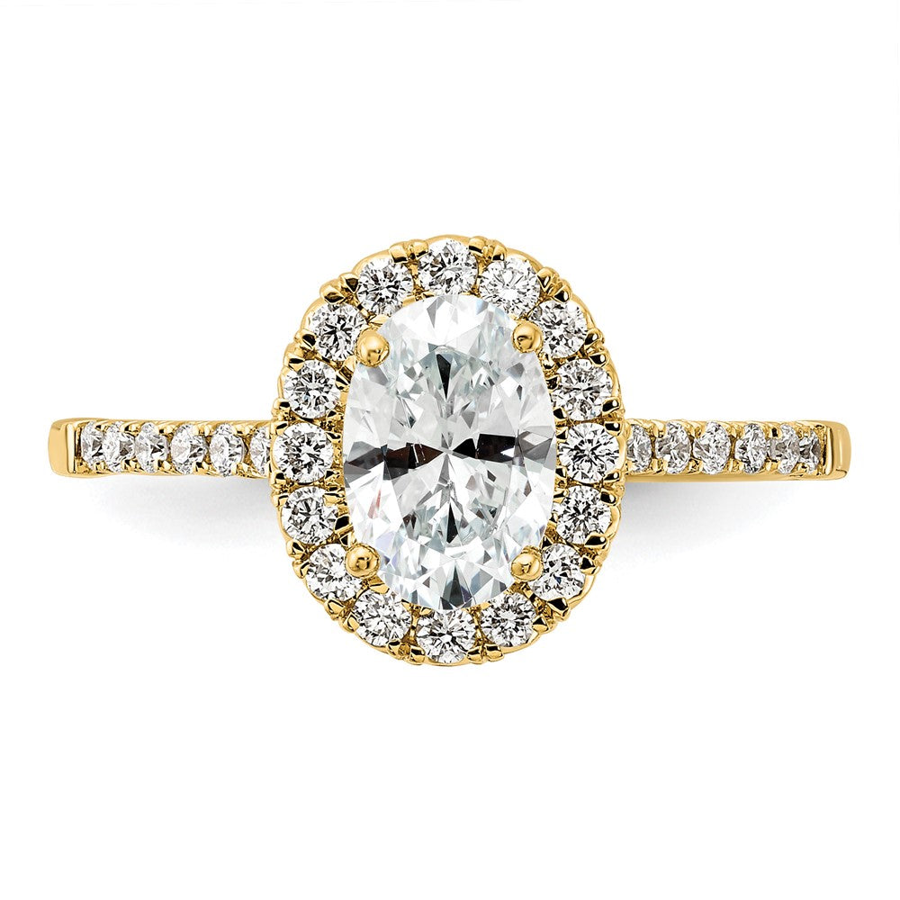The 14k Yellow Gold 3/8 Ct. Lab Grown Diamond VS/SI+ G+ 1 Ct. Center Oval Halo Engagement Ring is ideal for celebrating a timeless love story. Crafted from radiant 14k yellow gold, it features a stunning oval halo, showcasing a 1-carat centerpiece of lab-grown diamonds. Surrounding it are multiple meticulously placed round diamonds, adding an extra touch of sparkle. These diamonds, known for their VS/SI+ clarity and vibrant G+ color, ensure a brilliant gleam. Give your beloved the beauty of this exquisite 14k Yellow Gold 3/8 Ct. Lab Grown Diamond Oval Halo Engagement Ring—a symbol of lasting love.