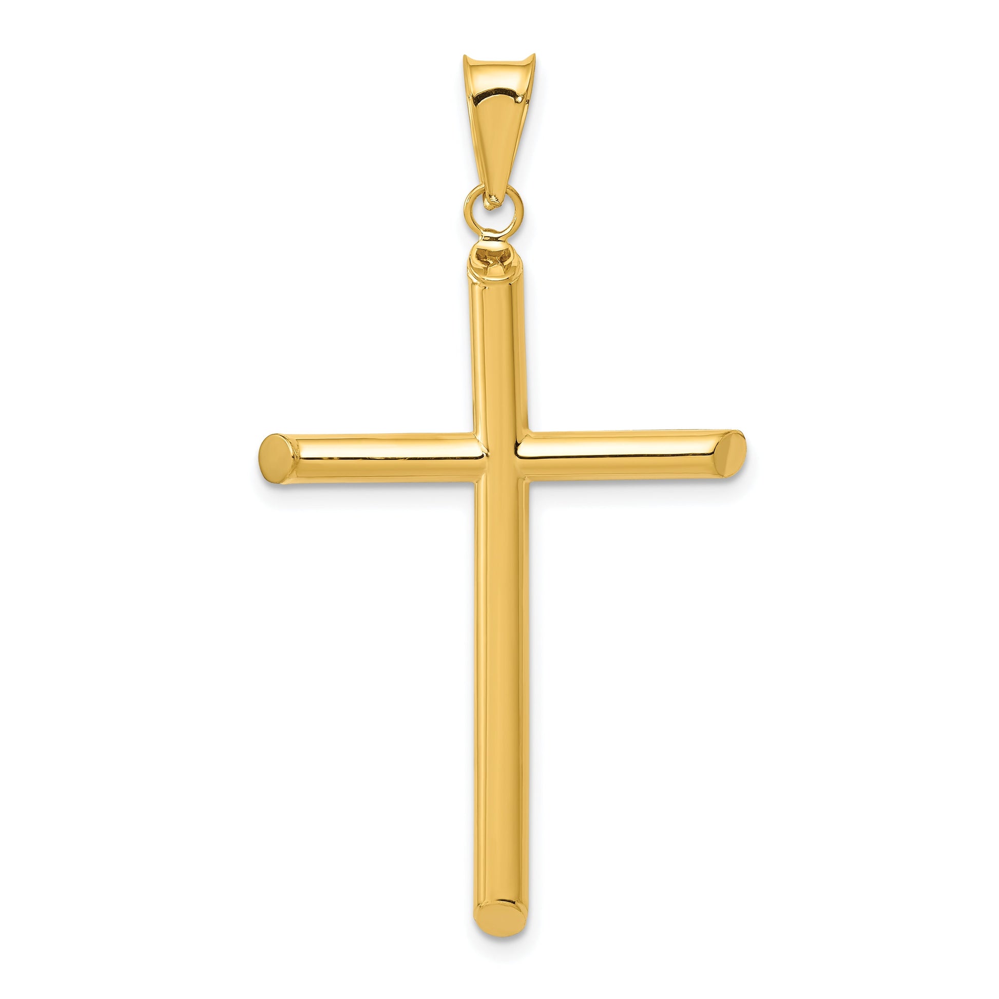 The 14K Yellow Gold 3-D Polished Hollow Cross Pendant is a stunning piece of jewelry with timeless charm. Crafted from 14-karat gold, its polished finish gleams with elegance. This piece, measuring 45mm in length and 25mm in width, features a brilliant 3D design that captures attention. The cross is hollow, achieved through a precise die-struck manufacturing process, making it lightweight and comfortable for everyday wear. The pendant's bail is practical with a width of 4mm and a length of 7.95mm, adding to its striking design. Elevate your style with the stunning 14K Yellow Gold 3-D Polished Hollow Cross Pendant.