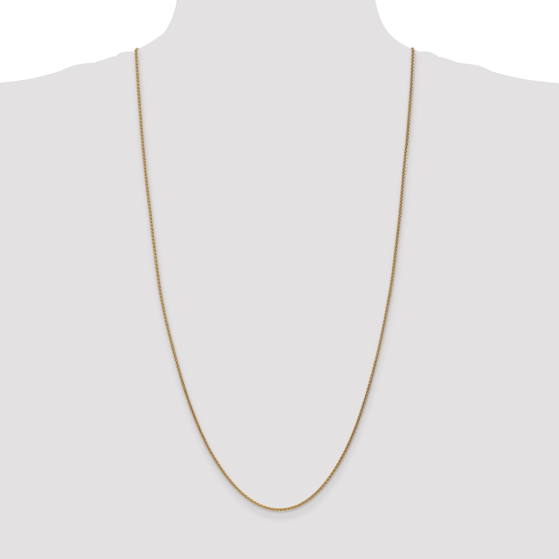 The 14K Yellow Gold 30 Inch 1.7mm Spiga Chain with Lobster Clasp adds sparkle to any look. Its radiant sheen is a testament to its 14K polished gold finish. This spiga chain, also known as a wheat chain, measures an elegant 30 inches long and 1.7mm wide—ideal for pendants or securing on its own. Crafted through extrusion and die striking, it ensures durability and flair. The lobster clasp offers secure fastening while allowing easy wear. Perfect for women looking to enhance their style, the 14K Yellow Gold 30 Inch 1.7mm Spiga Chain truly makes a statement.