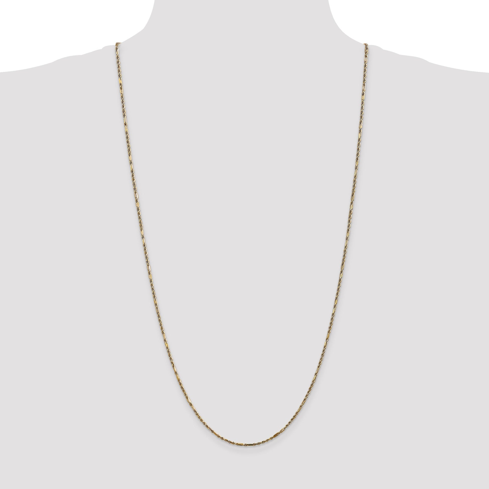 Discover elegance with our 14K Yellow Gold Diamond-Cut Milano Rope Chain. This 30-inch stunner exudes timeless glamor, crafted in radiant gold. Its 1.8mm width boasts a diamond-cut texture, catching the light with every move. The solid rope chain showcases durability and style, offering a classic touch to any jewelry collection. It features a secure lobster clasp, ensuring safe wear. Ideal for women seeking sophistication, this chain is a must-have accessory. Elevate any outfit with the 14K Yellow Gold Diamond-Cut Milano Rope Chain—an essential in fine jewelry.
