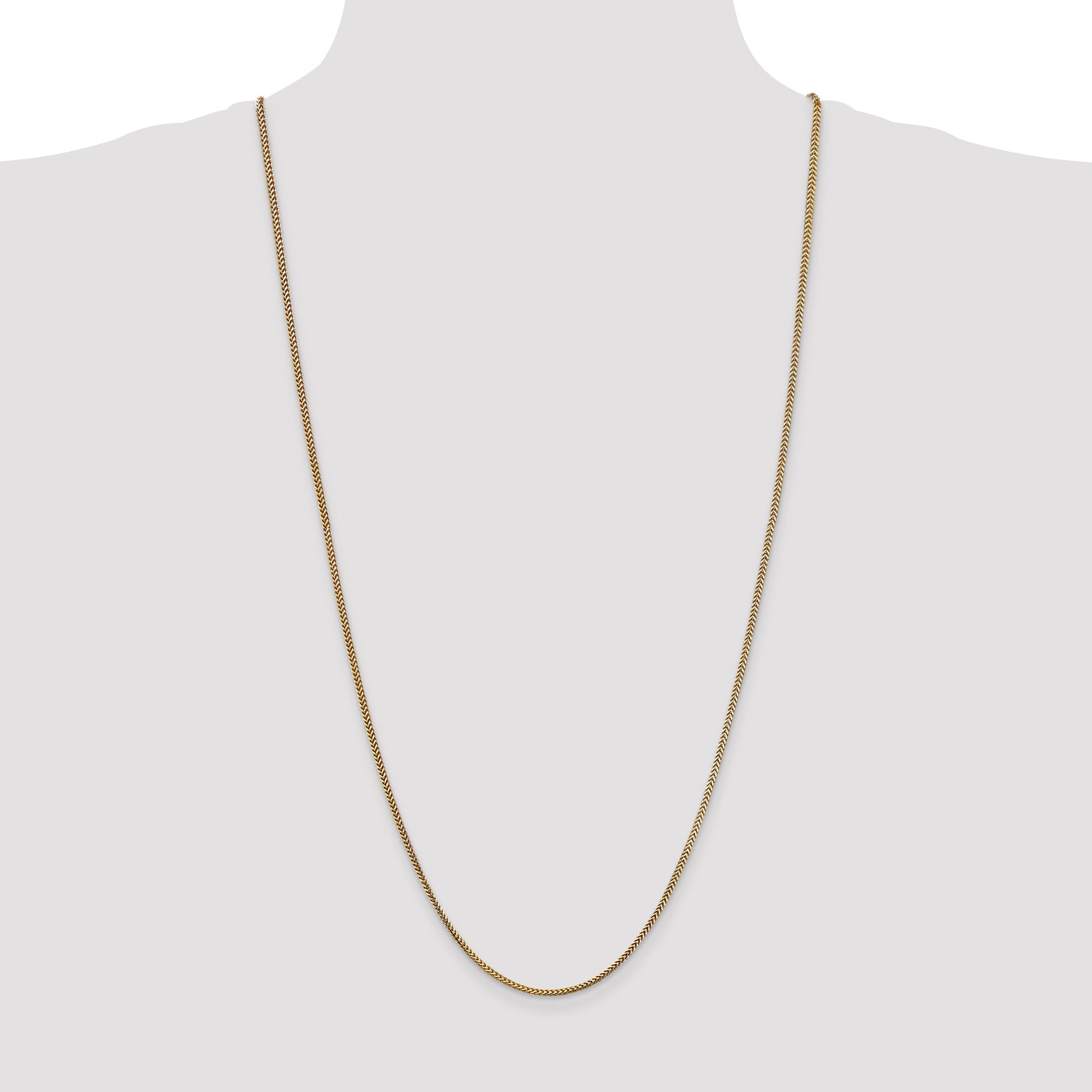 The 14K Yellow Gold 14K 30 Inch 1.5mm Franco With Lobster Clasp Chain is a sleek piece perfect for everyday wear. Made from solid 14K gold, it offers durability and a warm shine. The chain measures 30 inches long and features a 1.5mm width, giving it a subtle, refined look. The Franco style adds a touch of elegance, while the lobster clasp ensures easy, secure fastening. Crafted through precise manufacturing, this necklace is designed to last. The 14K Yellow Gold 14K 30 Inch 1.5mm Franco With Lobster Clasp Chain is an ideal accessory for women who want a simple, chic addition to their jewelry collection.