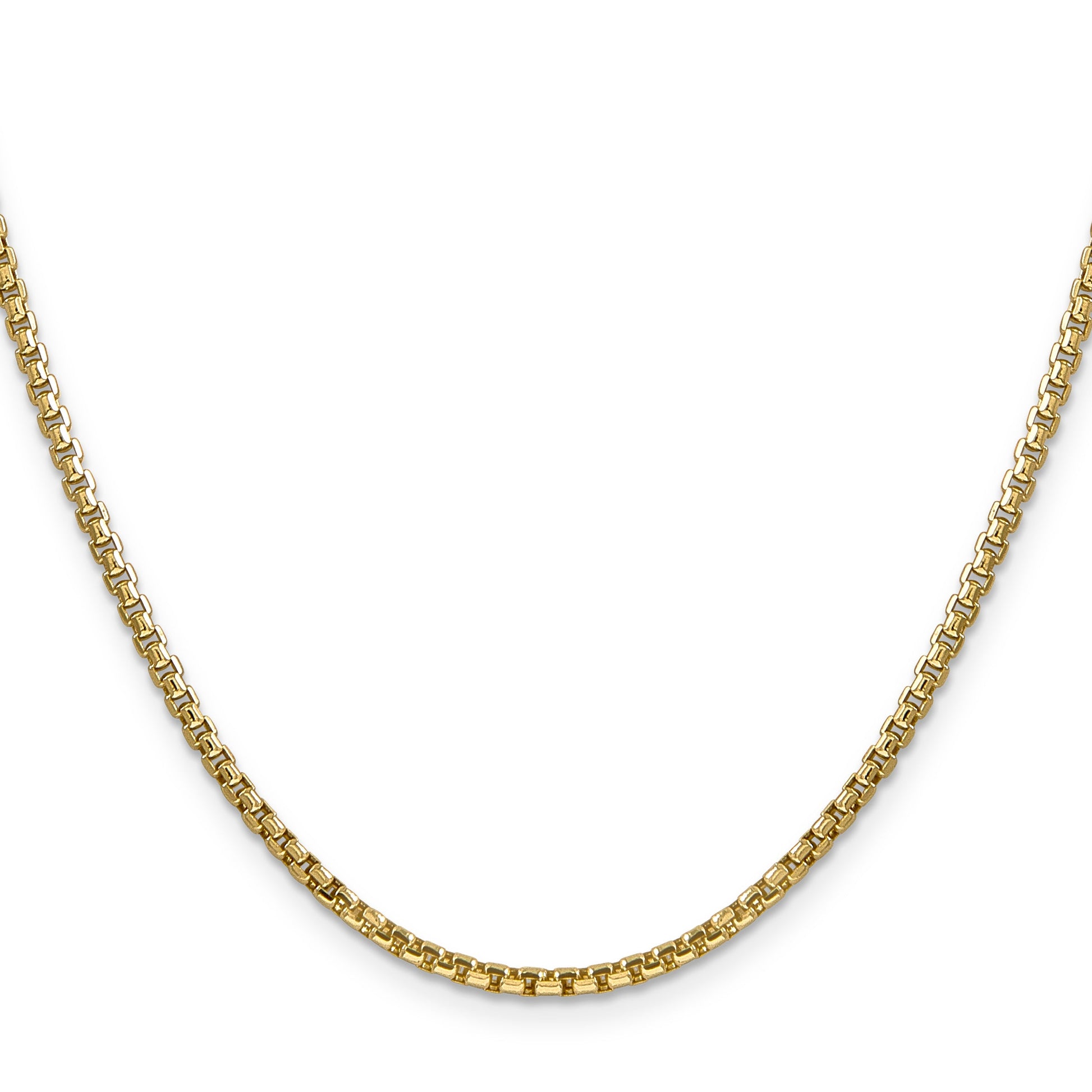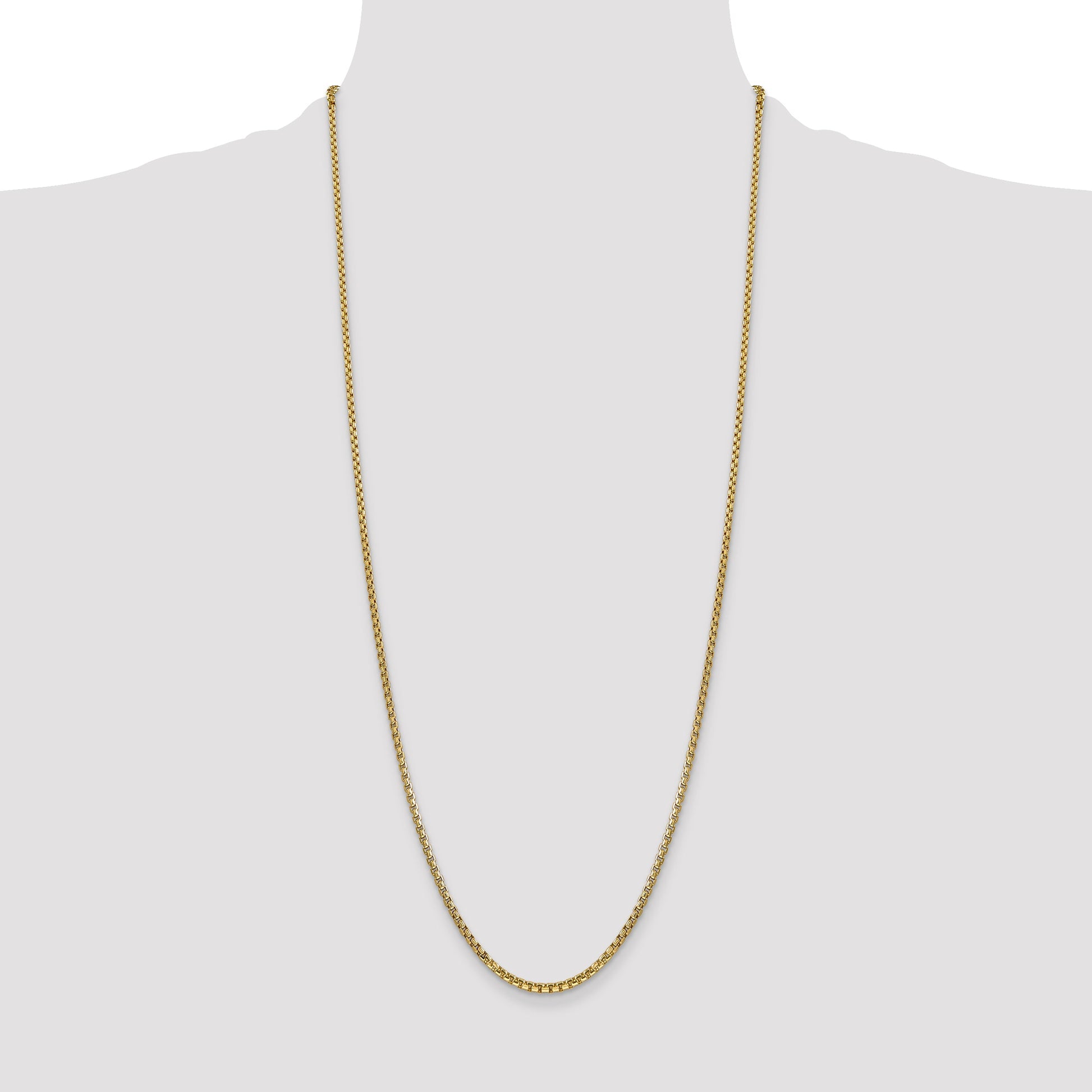 Elevate your elegance with the 14K Yellow Gold 30 Inch 2.45mm Semi-Solid Round Box Chain Necklace. Crafted from premium 14K gold, this necklace boasts a polished finish that gleams with sophistication. Its 2.45mm width provides a delicate yet noticeable presence, perfect for any occasion. The lobster clasp ensures a secure fit, while the semi-solid design combines lightness and durability. Machine-made for precision, this chain promises long-lasting wear. Adorn yourself with this versatile 14K Yellow Gold 30 Inch 2.45mm Semi-Solid Round Box Chain Necklace and let your style shine.
