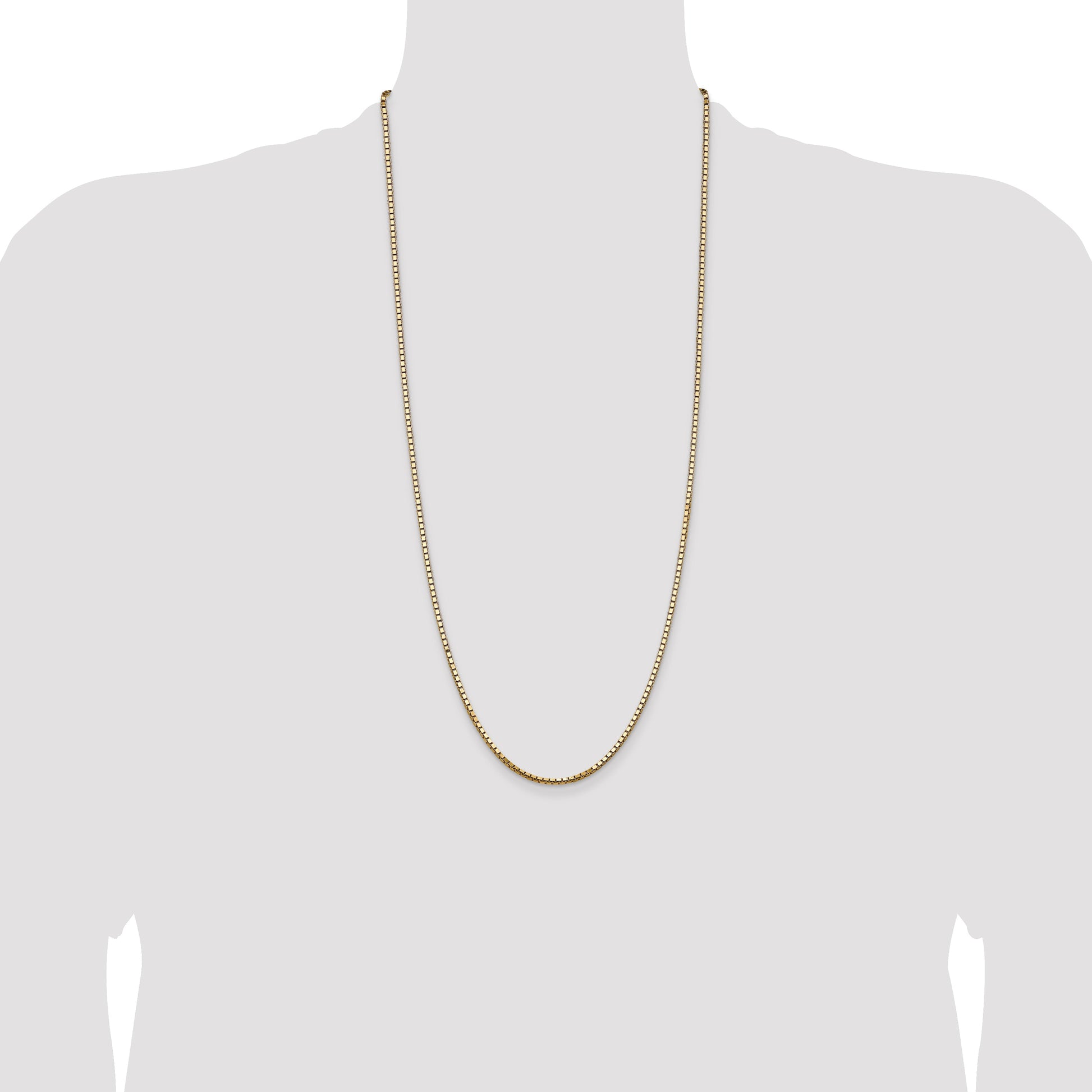 Introducing our 14K Yellow Gold 30 Inch 2.5mm Box Chain with Lobster Clasp, a stunning piece perfect for any outfit. Crafted from pure 14K gold, this polished chain measures 30 inches in length and 2.5mm in width. The sturdy box design ensures durability, while the lobster clasp provides a secure fit. Ideal for women who appreciate fine craftsmanship, this machine-made necklace boasts a solid build and elegant finish. The 14K Yellow Gold 30 Inch 2.5mm Box Chain with Lobster Clasp is more than just jewelry; it's a timeless treasure.