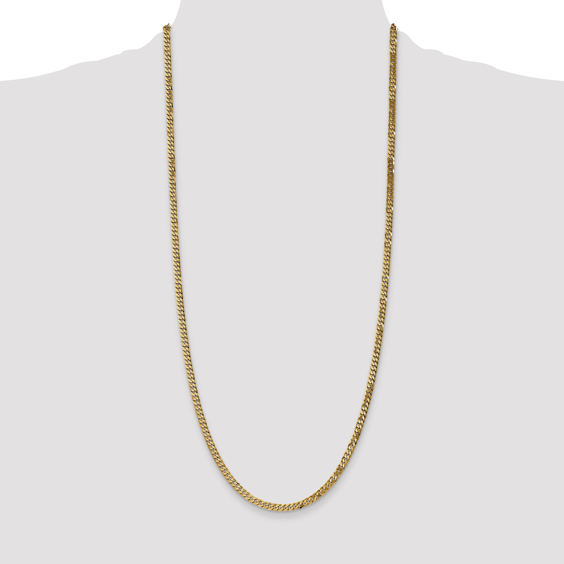 Discover elegance with this 14K Yellow Gold 30-Inch, 3.9mm Flat Beveled Curb Chain. Crafted with care, this polished necklace radiates luxury and grace. This chain, solid and cast with precision, features a sleek flat profile enhanced with beveled edges. A strong lobster clasp ensures it stays securely in place. Its 30-inch length adds a touch of sophistication to every outfit. Ideal for adding a refined statement to any look, this chain highlights the timeless charm of yellow gold. Perfect for expressing your style, this 14K Yellow Gold beauty is a true treasure.
