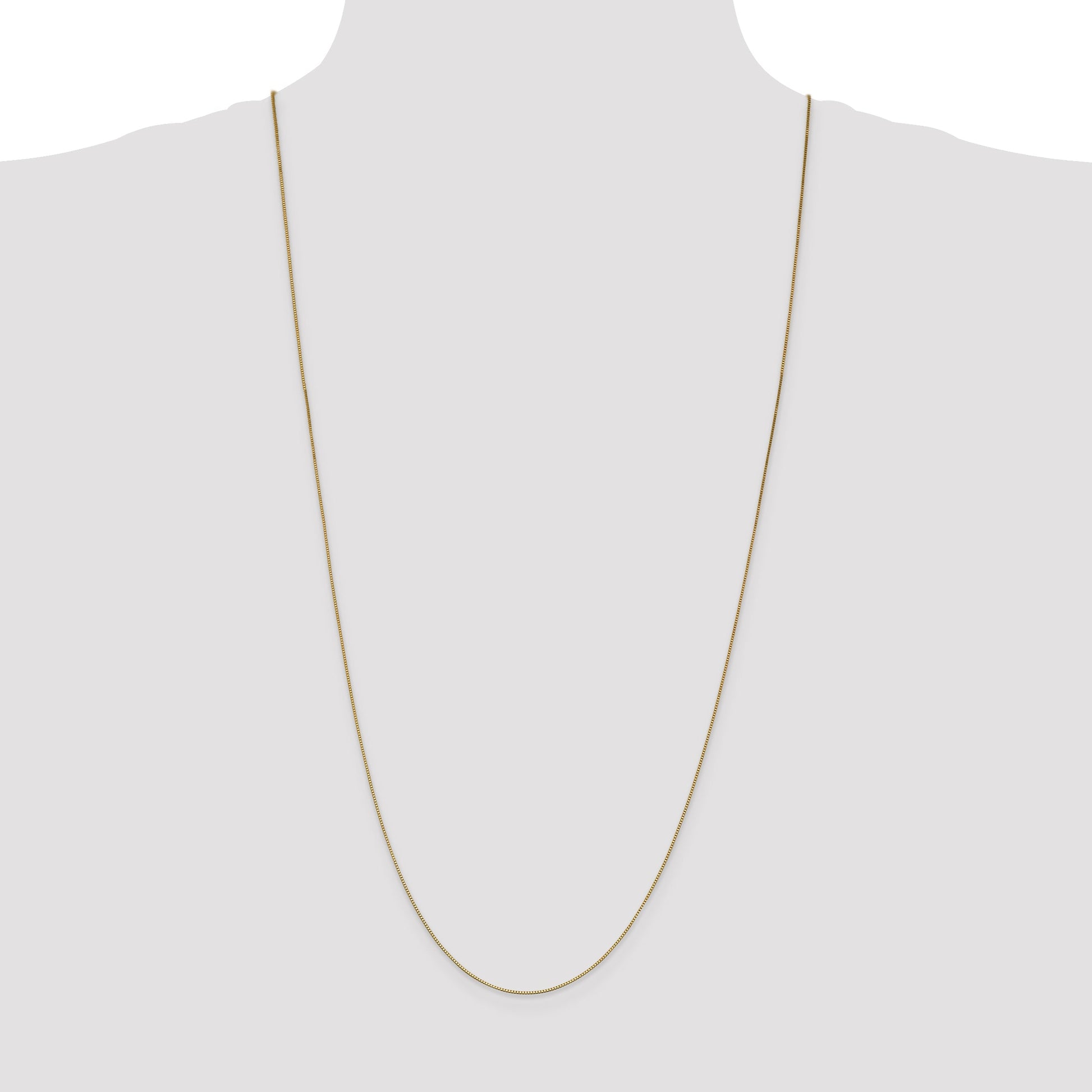The 14K Yellow Gold 30 Inch .7mm Box With Lobster Clasp Chain is a sleek, eye-catching piece. Made of polished 14K gold, this 30-inch necklace features a sturdy 0.7mm box chain design. The lobster clasp ensures it stays securely in place. Crafted through a precise casting process, this machine-made beauty radiates elegance. Perfect for women who love timeless, versatile jewelry, the 14K Yellow Gold 30 Inch .7mm Box With Lobster Clasp Chain pairs well with any outfit, day or night.