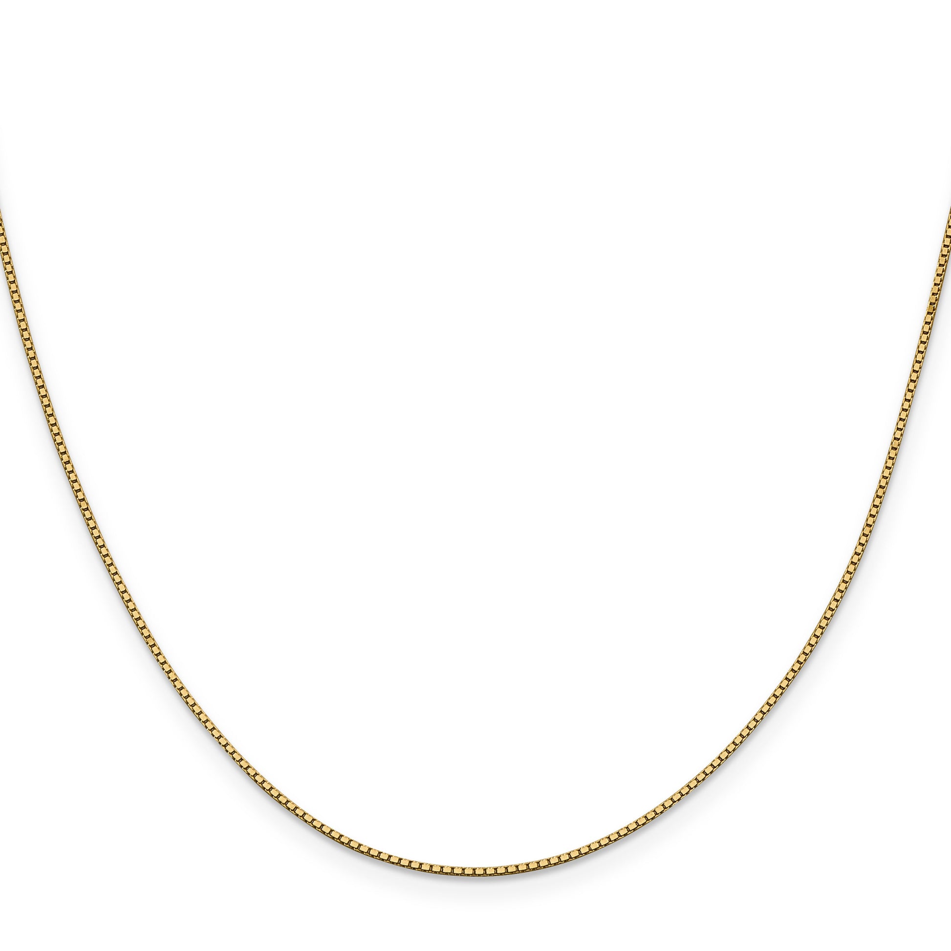 Discover elegance with the 14K Yellow Gold 30 Inch .95mm Box Chain with Lobster Clasp. Crafted from pure 14K gold, this necklace features a bright polished finish. The 30-inch length offers a sleek look that's both classic and modern. Its 0.95mm width makes it perfect for pairing with any pendant, while the secure lobster clasp ensures it stays in place. A solid, machine-made piece, this chain is designed for lasting durability and style. Elevate your jewelry collection with the timeless 14K Yellow Gold 30 Inch .95mm Box Chain with Lobster Clasp.