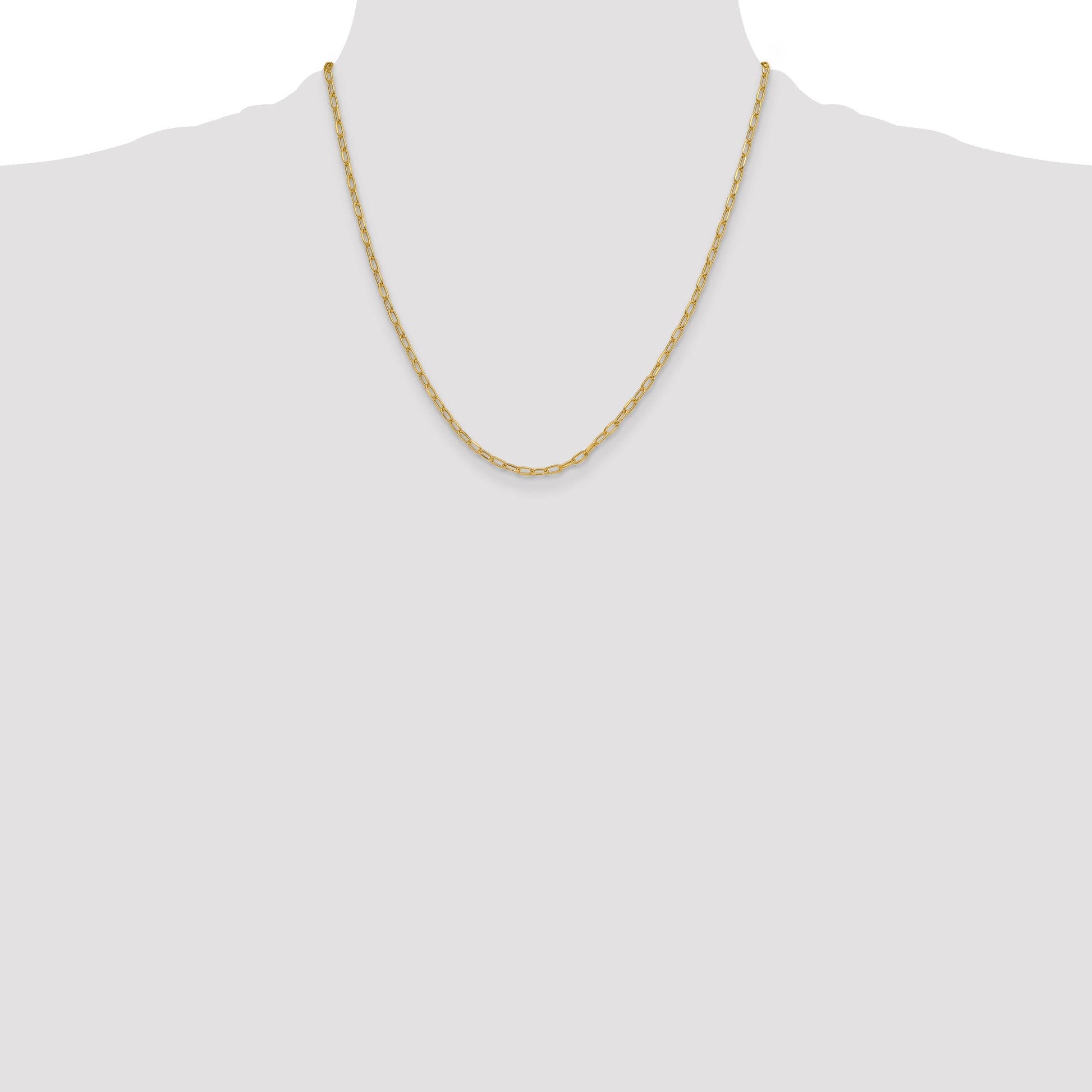 The 14K Yellow Gold 3.0mm Semi-Solid Beveled D/C Paperclip Chain is an eye-catching piece that adds style to any outfit. Made from high-quality 14K yellow gold, it features a polished finish that shines bright. The chain measures 20 inches long with a sturdy lobster clasp for a secure fit. Its diamond-cut texture gives it a modern look, while the beveled design adds depth. Built to last, the necklace comes with a lifetime guarantee. The 14K Yellow Gold 3.0mm Semi-Solid Beveled D/C Paperclip Chain makes a perfect gift or a reliable everyday piece.