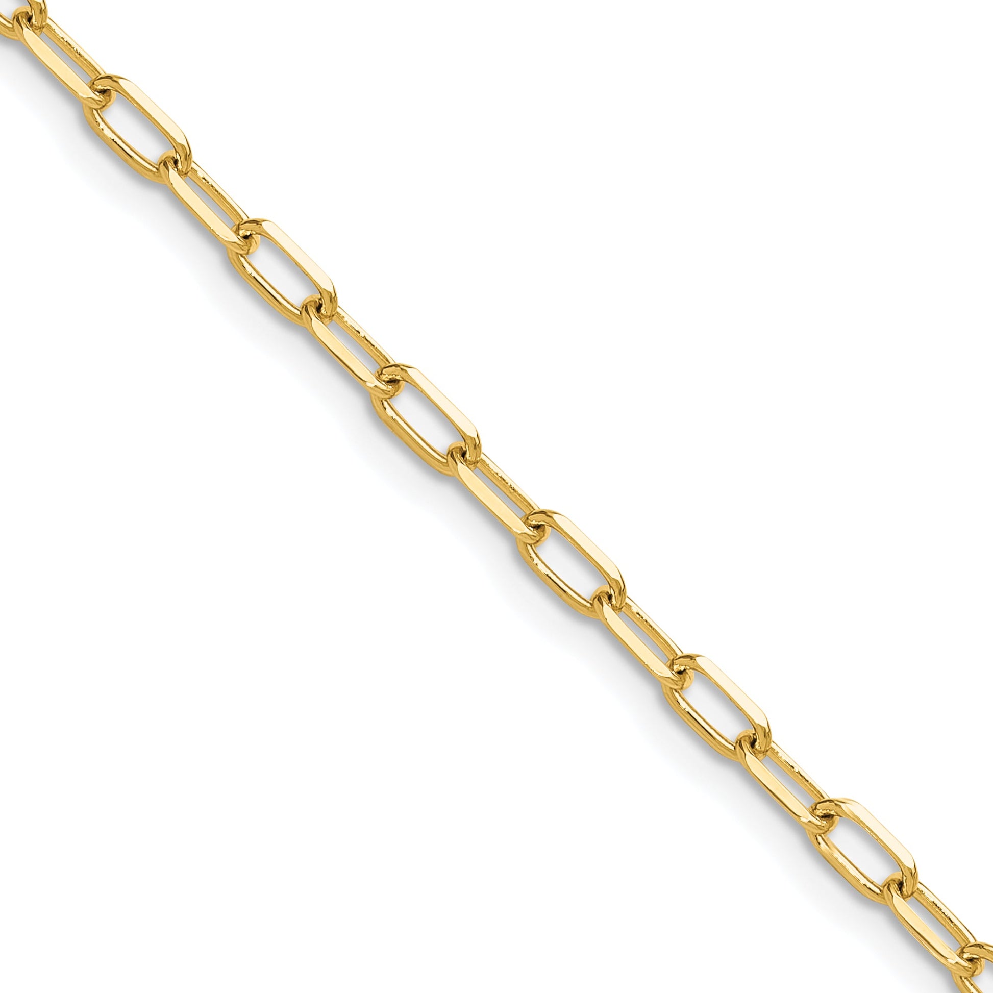 The 14K Yellow Gold 3.0mm Solid Beveled D/C Paperclip Chain is a sleek tool to elevate your look. Crafted from pure 14K gold, this necklace offers durability and a rich finish. Its polished surface shines bright with a diamond-cut texture that catches the light. The 18-inch chain features a sturdy lobster clasp for easy wear. The beveled design adds a modern touch to a classic paperclip style. Perfect for everyday wear or stacking with other jewelry, the 14K Yellow Gold 3.0mm Solid Beveled D/C Paperclip Chain is a must-have addition to any jewelry collection.