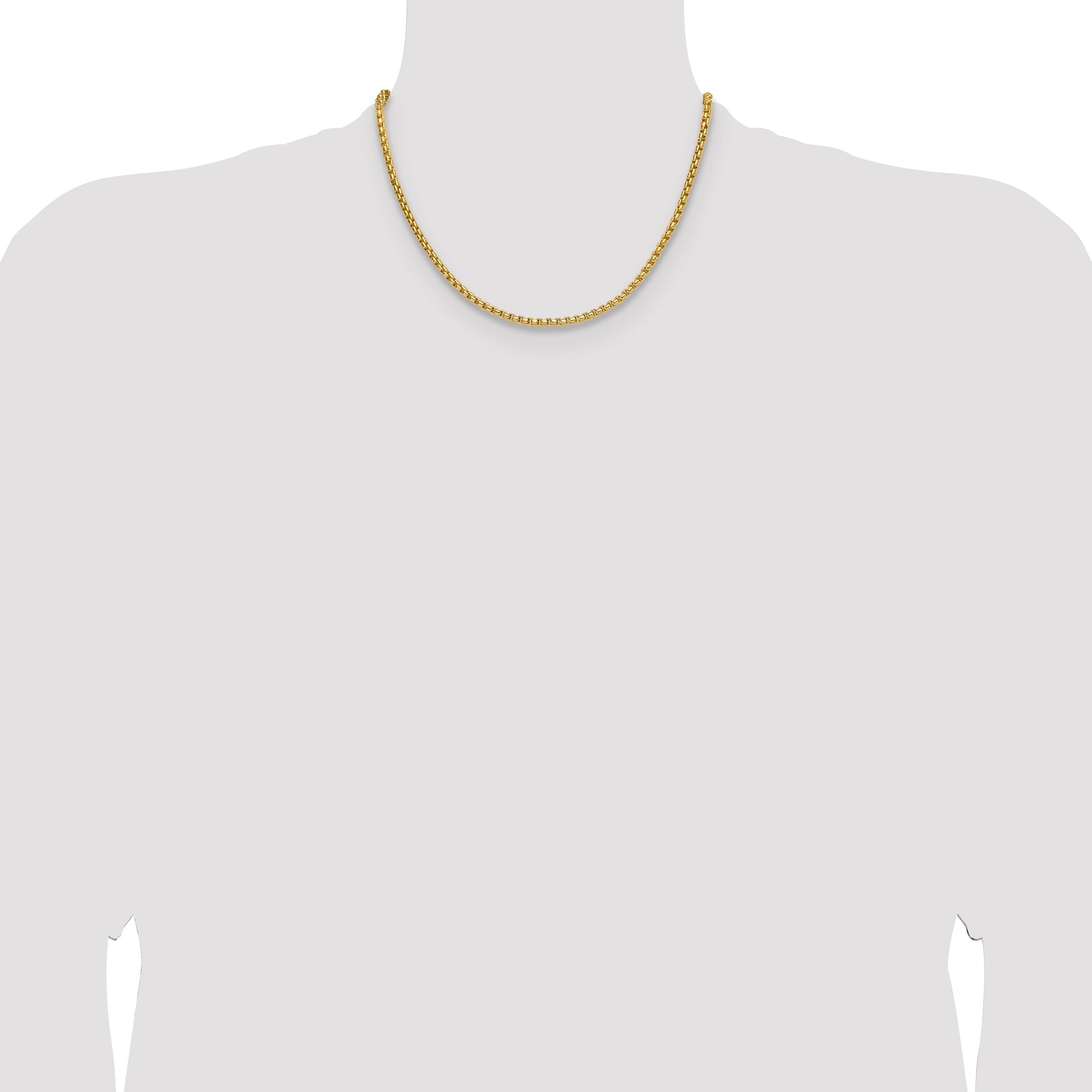 The 14K Yellow Gold 14K 3.7mm Semi-Solid D/C Round Box Chain is a stylish choice for daily wear. Crafted from high-quality 14K gold, this chain features a polished finish and a diamond-cut texture that adds subtle shine. Measuring 18 inches long, it sits comfortably on the neck and is designed with a sturdy lobster clasp for easy wear. The chain is machine-made, ensuring durability, and the solid build guarantees it lasts for years. This necklace is perfect for those who love sleek, timeless jewelry, and it comes with a lifetime guarantee from the maker.