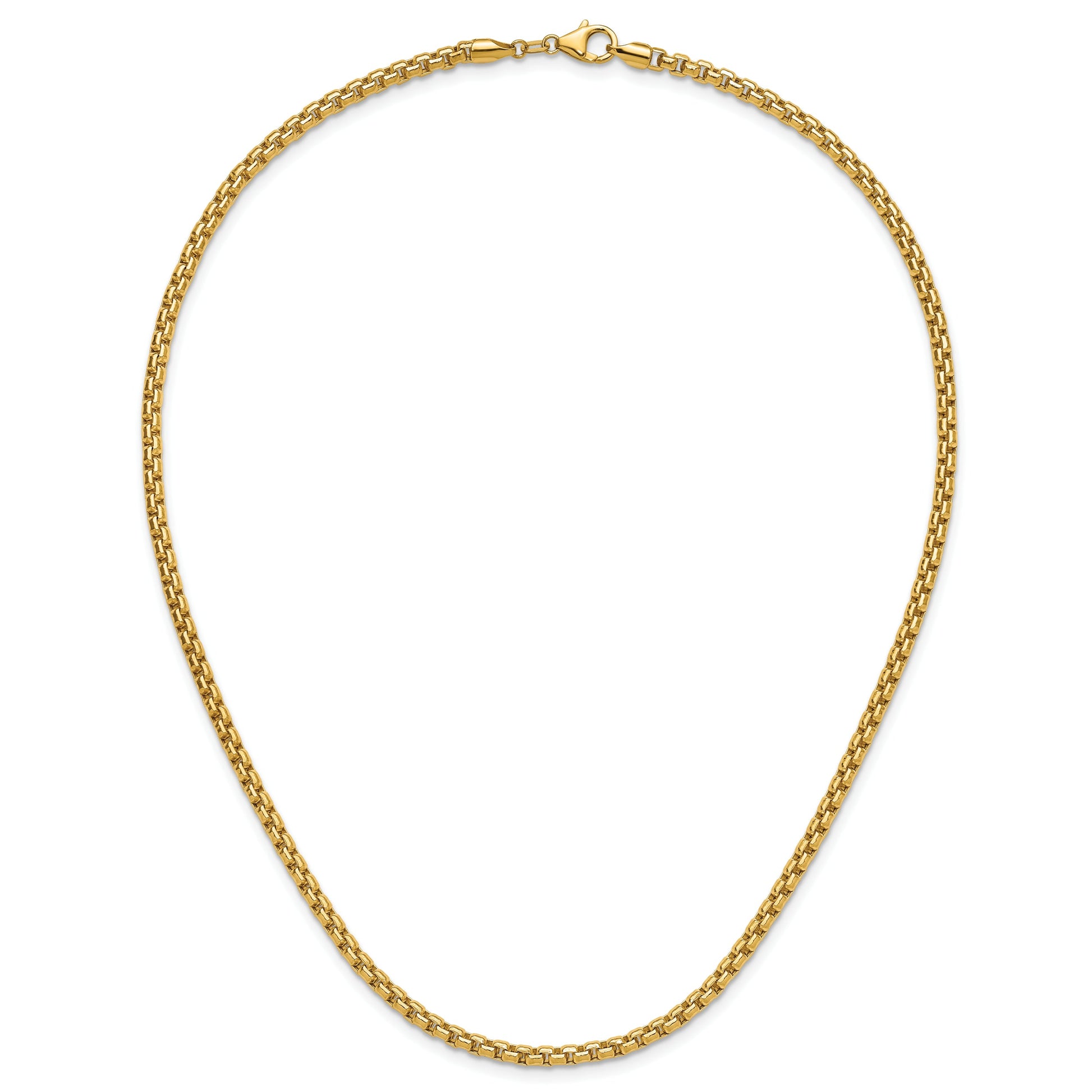 The 14K Yellow Gold 14K 3.7mm Semi-Solid D/C Round Box Chain is a must-have for those who want a stylish, durable necklace. Crafted from high-quality 14K gold, it features a smooth, polished finish and a sturdy box design that lies flat on your skin. At 22 inches long, this chain is perfect for everyday wear or layering with other necklaces. Its diamond-cut texture adds a subtle sparkle, making it eye-catching yet versatile. The lobster clasp is easy to open and close, ensuring a secure fit. With a lifetime guarantee, the 14K Yellow Gold 14K 3.7mm Semi-Solid D/C Round Box Chain guarantees quality and style for years.