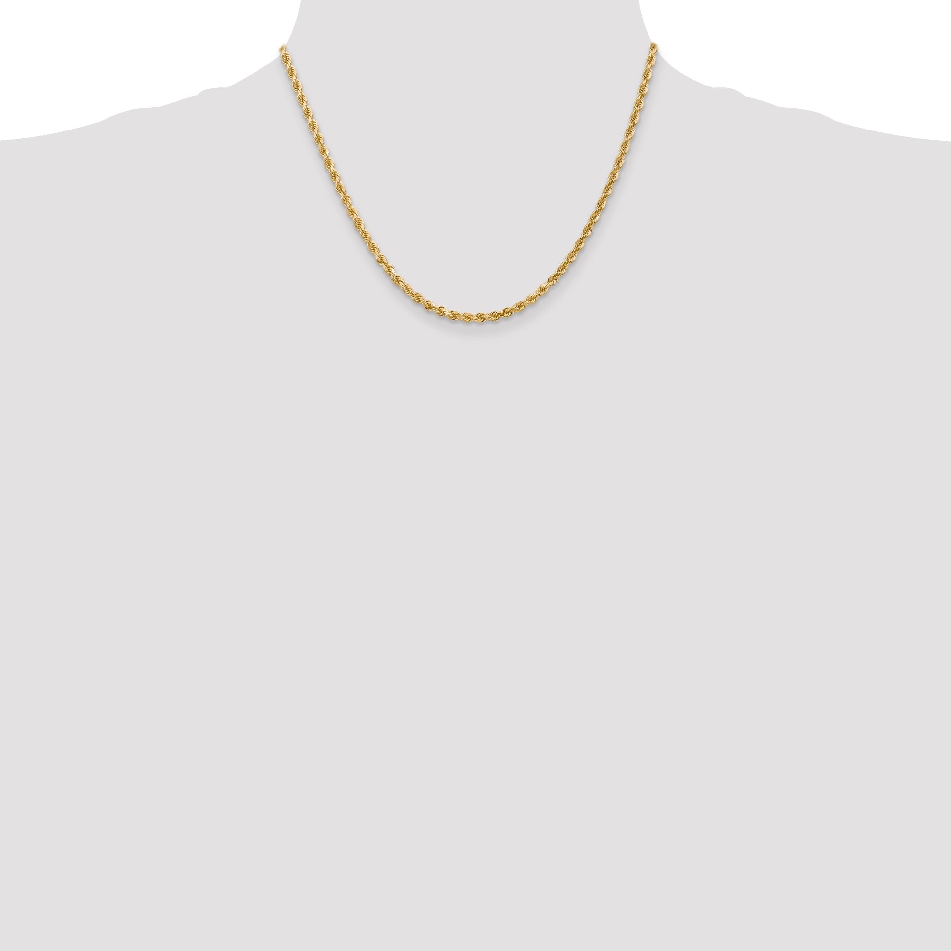 The 14K Yellow Gold 14K 3mm Diamond-Cut Rope Chain is a must-have for any jewelry lover. Crafted from solid 14K gold, this necklace shines bright with a polished finish and a diamond-cut texture that adds a touch of sparkle. It measures 18 inches long with a sturdy lobster clasp, making it easy to wear and secure. The 3mm width gives it a bold yet elegant look, perfect for both casual and formal wear. Built to last with a lifetime guarantee, the 14K Yellow Gold 14K 3mm Diamond-Cut Rope Chain blends quality and style effortlessly.