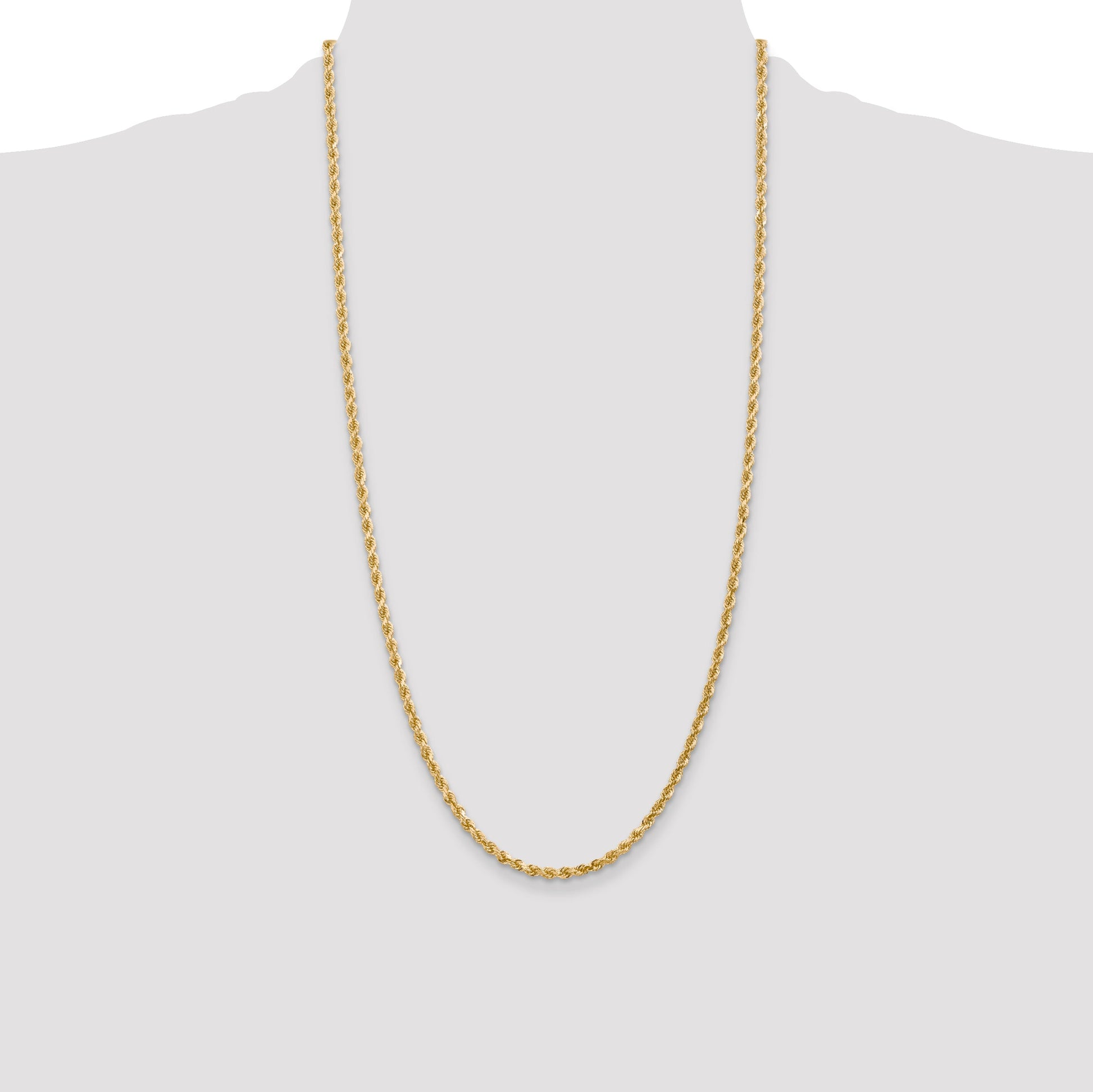 The 14K Yellow Gold 14K 3mm Diamond-Cut Rope Chain is a stylish piece that adds shine to any look. Made from bright, polished 14K gold, this necklace measures 28 inches long and features a sturdy lobster clasp. Its diamond-cut finish gives the chain extra sparkle and a textured look that catches the light. The rope style offers a classic feel with a modern twist. Crafted with precision in a machine-made process, the chain is built to last and comes with a lifetime guarantee. Elevate your jewelry collection with the elegance of the 14K Yellow Gold 14K 3mm Diamond-Cut Rope Chain.