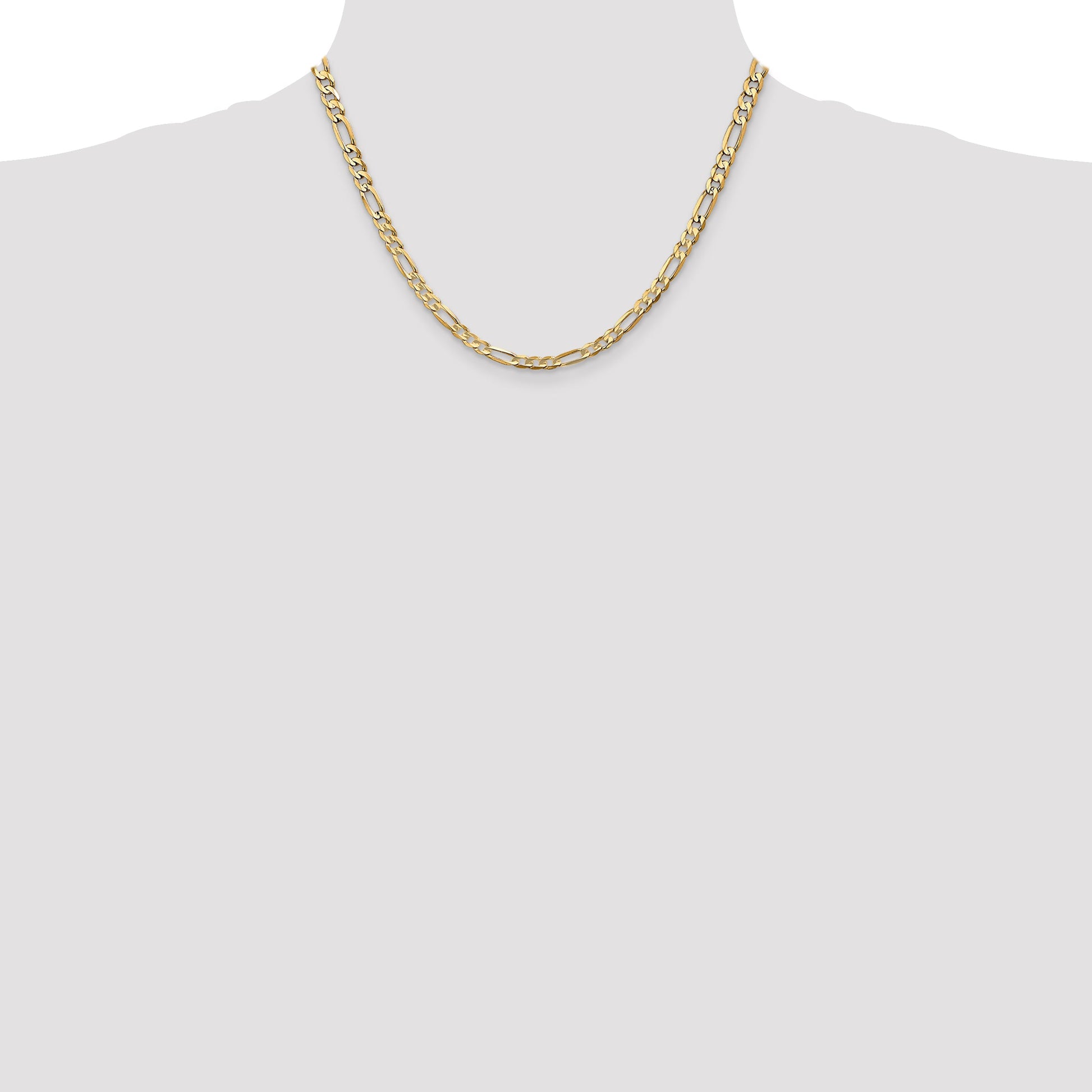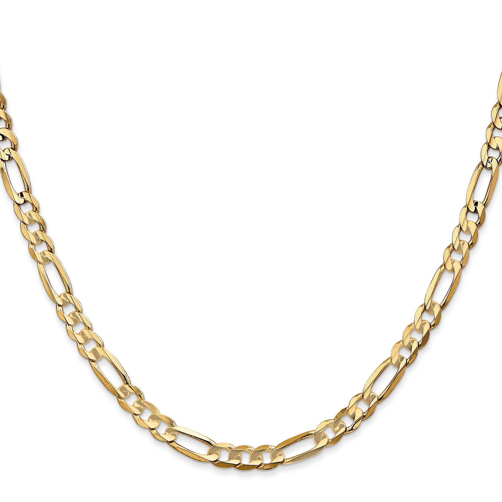 The 14K Yellow Gold 4.5mm Concave Open Figaro Chain offers a sleek and stylish choice for daily wear. Made from high-quality 14K gold, this chain has a polished finish that catches the eye. Its open Figaro link pattern adds a modern touch, making it perfect for any look. With an 18-inch length and a sturdy lobster clasp, it stays secure and comfortable. This necklace delivers durability and timeless appeal, backed by a lifetime guarantee. The 14K Yellow Gold 4.5mm Concave Open Figaro Chain is a fine piece that elevates any outfit with ease.