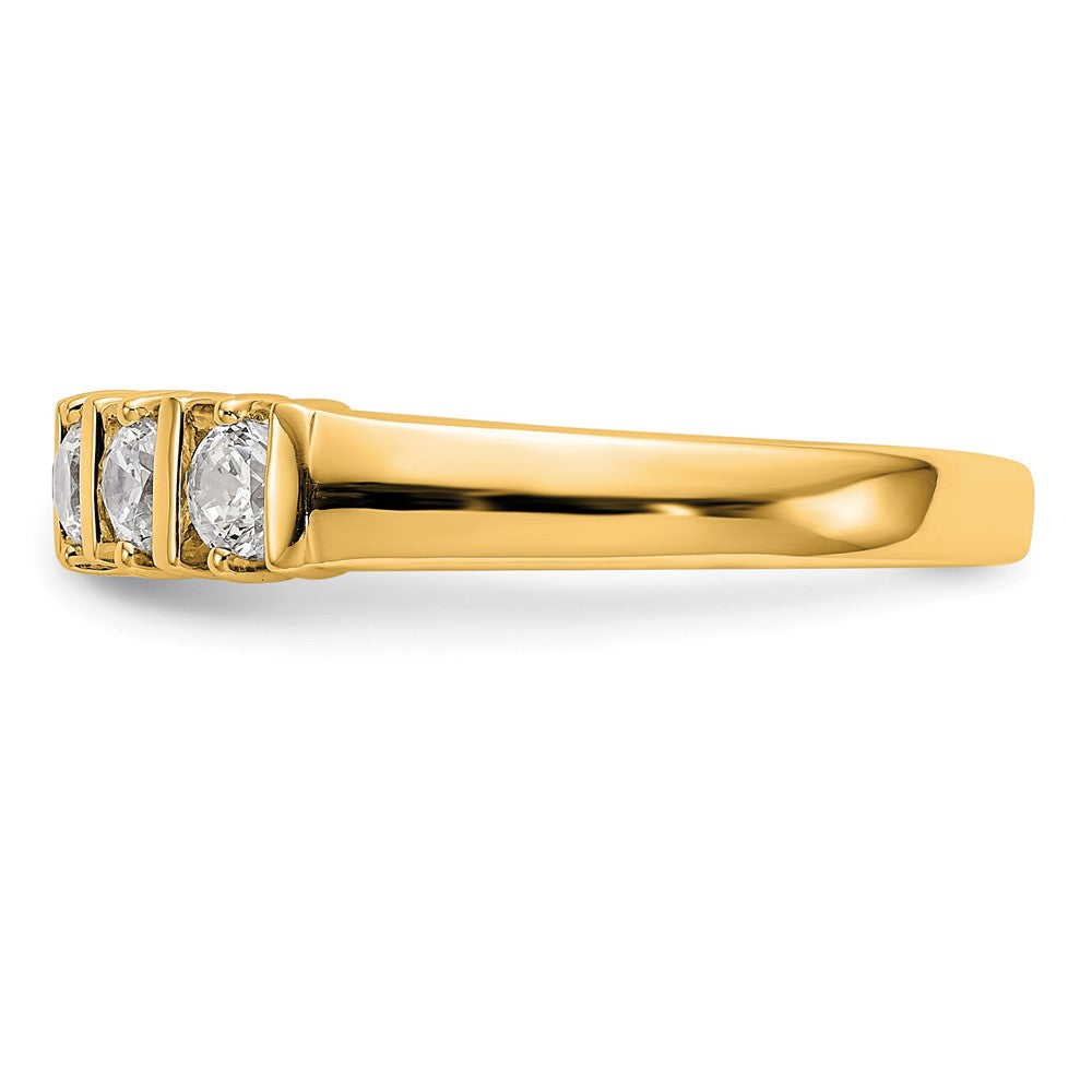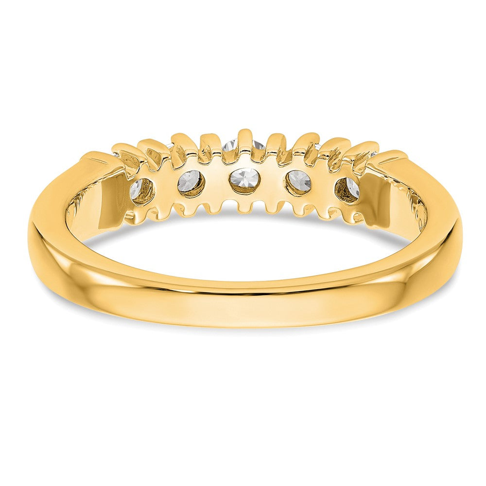 The 14K Yellow Gold 14K 5-Stone Diamond Band is a stunning ring that blends style and strength. Crafted from pure 14K gold and finished with a polished shine, this band features five natural round diamonds, each weighing 0.04 carats. The diamonds have a clarity rating of I1 (AA), adding a subtle sparkle to the piece. The band tapers from 3.1 to 2 mm and is cast for durability. Perfect as a wedding band or meaningful gift, the 14K Yellow Gold 14K 5-Stone Diamond Band offers a classic look with a touch of elegance.