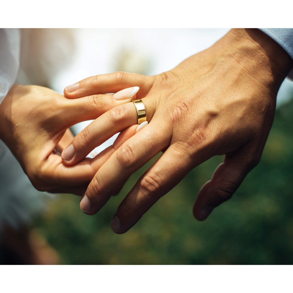 Introducing the 14K Yellow Gold Flat Band, a stunning piece that radiates elegance and charm. Crafted from polished 14K gold, this ring boasts a sleek 6.5mm wide profile, making it perfect for your special day or as a timeless accessory. Its solid build ensures durability while offering a comfortable fit. This band enhances its appeal with a flat back design that provides a modern touch. Customize it with unique engravings to create a personal keepsake. The 14K Yellow Gold Flat Band is ideal for anyone seeking sophistication in their jewelry collection.