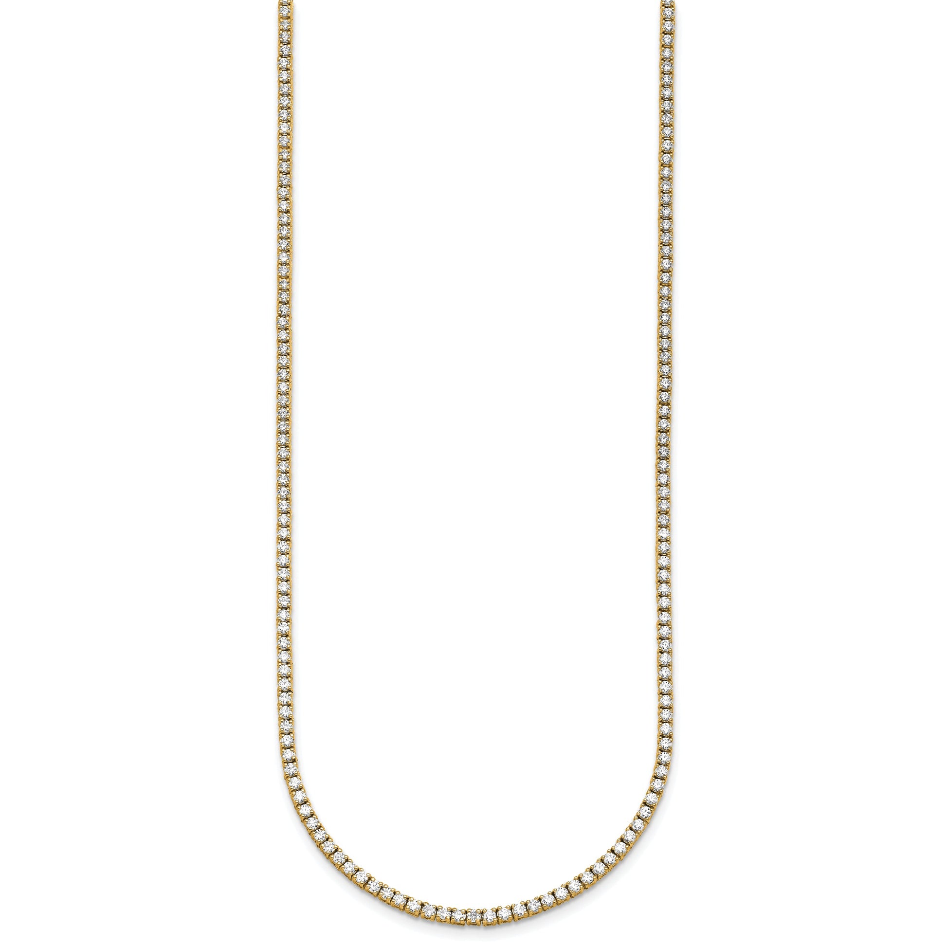 The 14K Yellow Gold 6 Carat Lab Grown Diamond Vs+ F+ Complete Round 24 Inch Straight Tennis Necklace is a stunning piece for any jewelry lover. It features a polished finish and is crafted from solid 14K gold, ensuring durability. The necklace showcases a total of 282 lab-grown diamonds, with 73 on the main chain and 209 as accents, all beautifully round-cut with VS+ clarity and F+ color grade. These sparkling stones are set securely with a box catch safety clasp, offering a sleek, continuous line of brilliance. Perfect for elevating your style or gifting someone special, the 14K Yellow Gold 6 Carat Lab Grown Diamond Vs+ F+ Complete Round 24 Inch Straight Tennis Necklace blends elegance with modern craft.