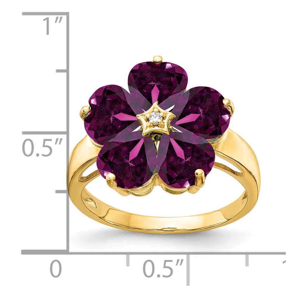 14k Yellow Gold 6mm Heart Rhodolite Garnet A Diamond ring